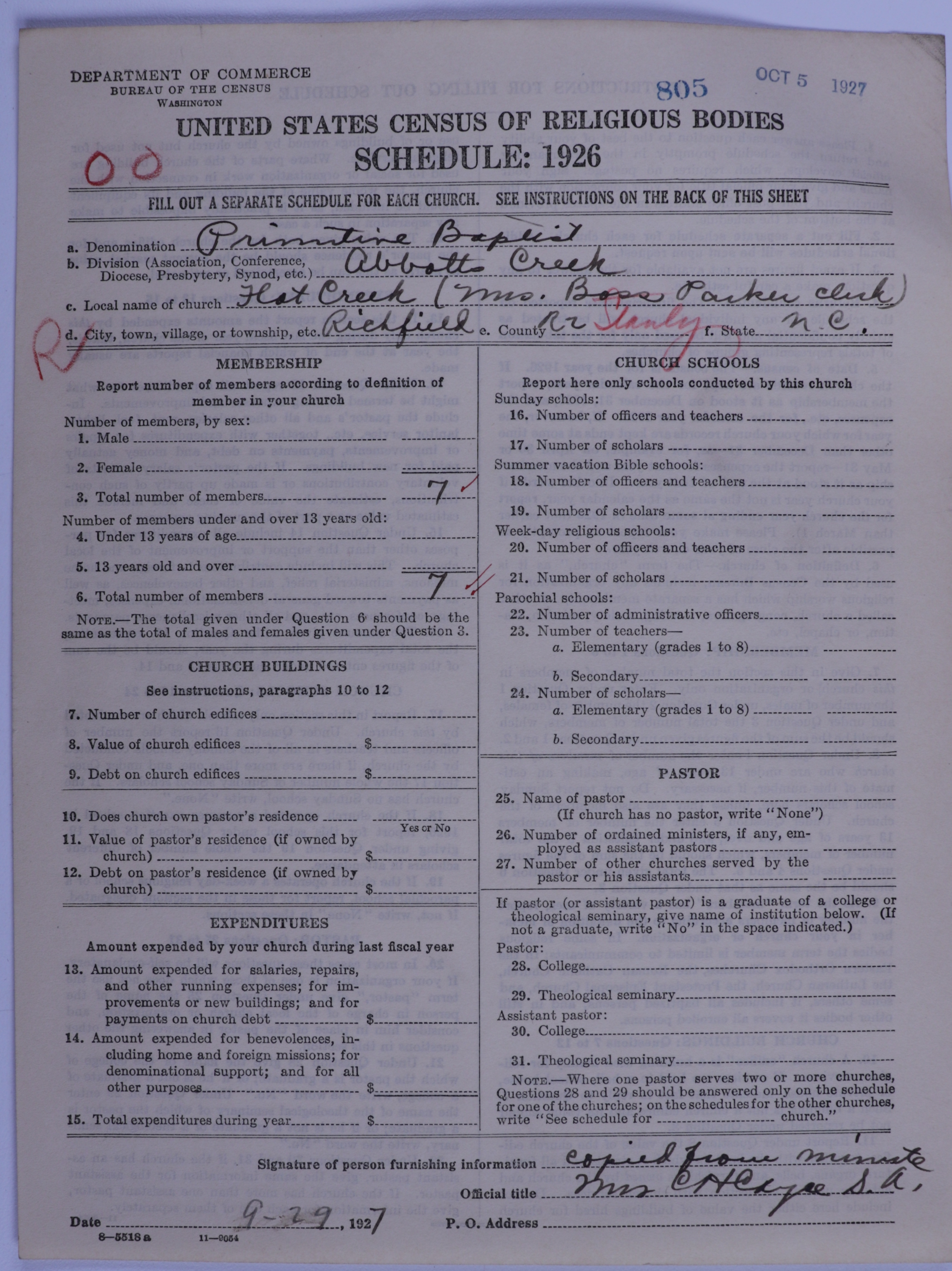 Primitive Baptists: 805