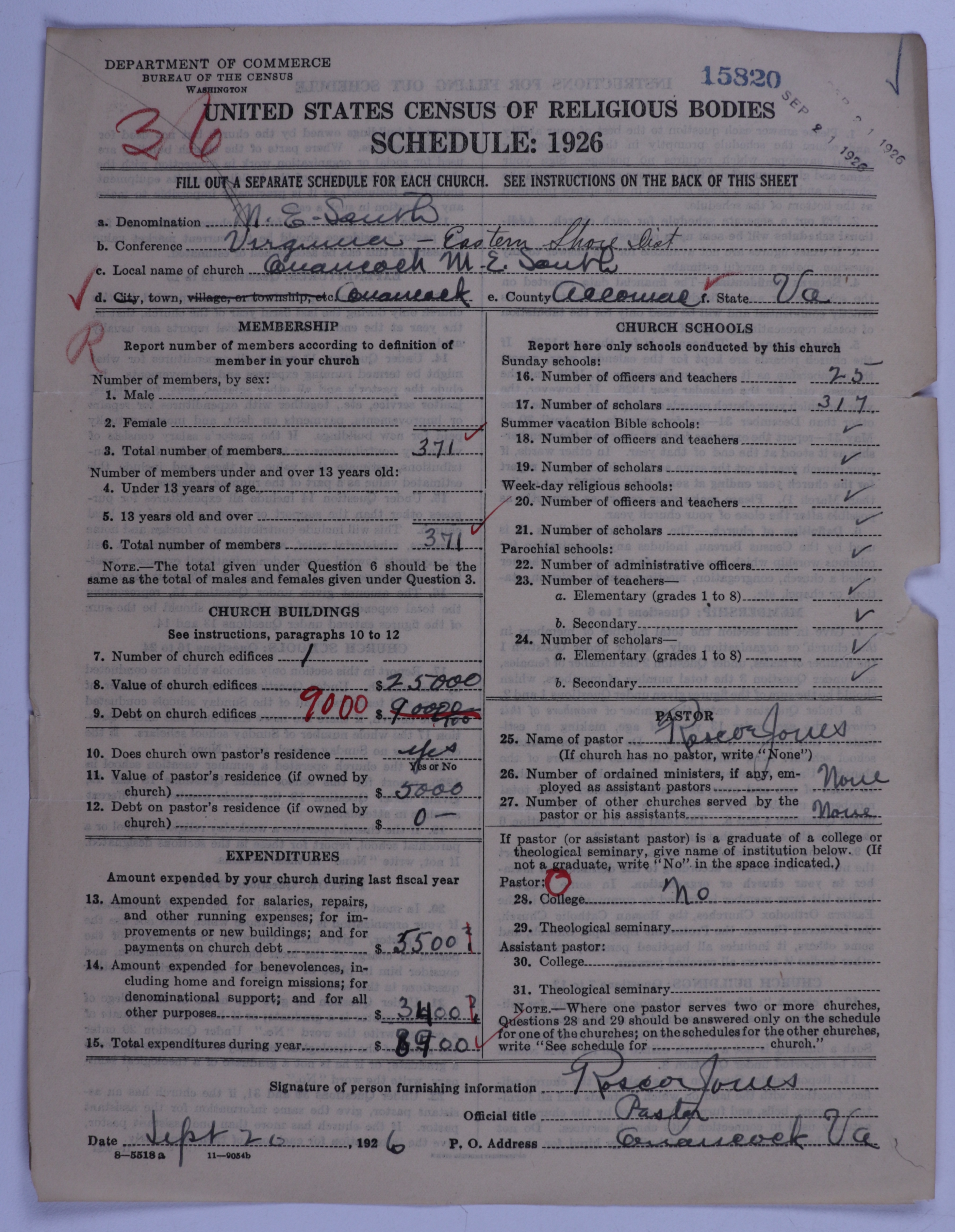 - Methodist Episcopal Church, South: 15820