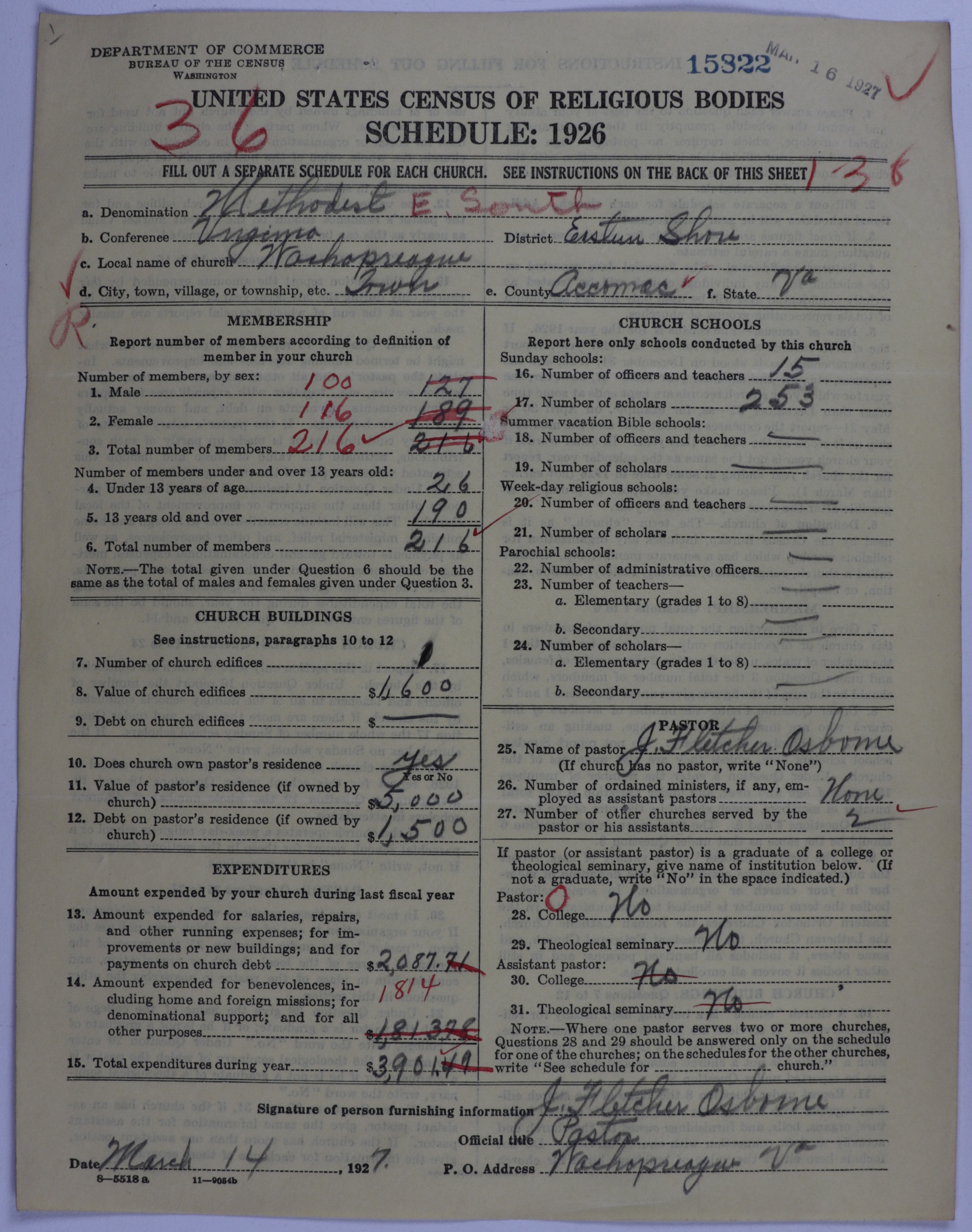 - Methodist Episcopal Church, South: 15822