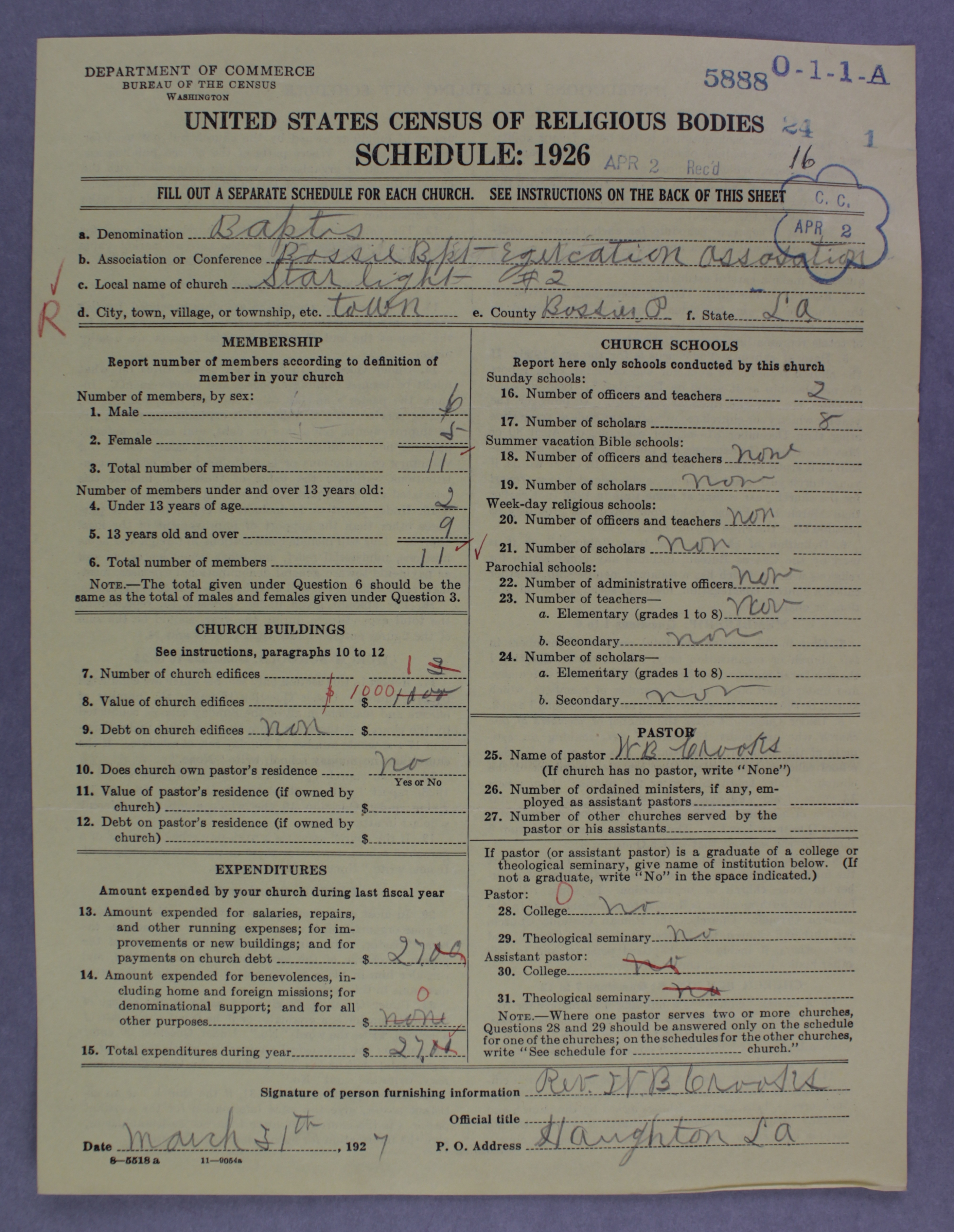 - 1926 U.S. Census of Religious Bodies