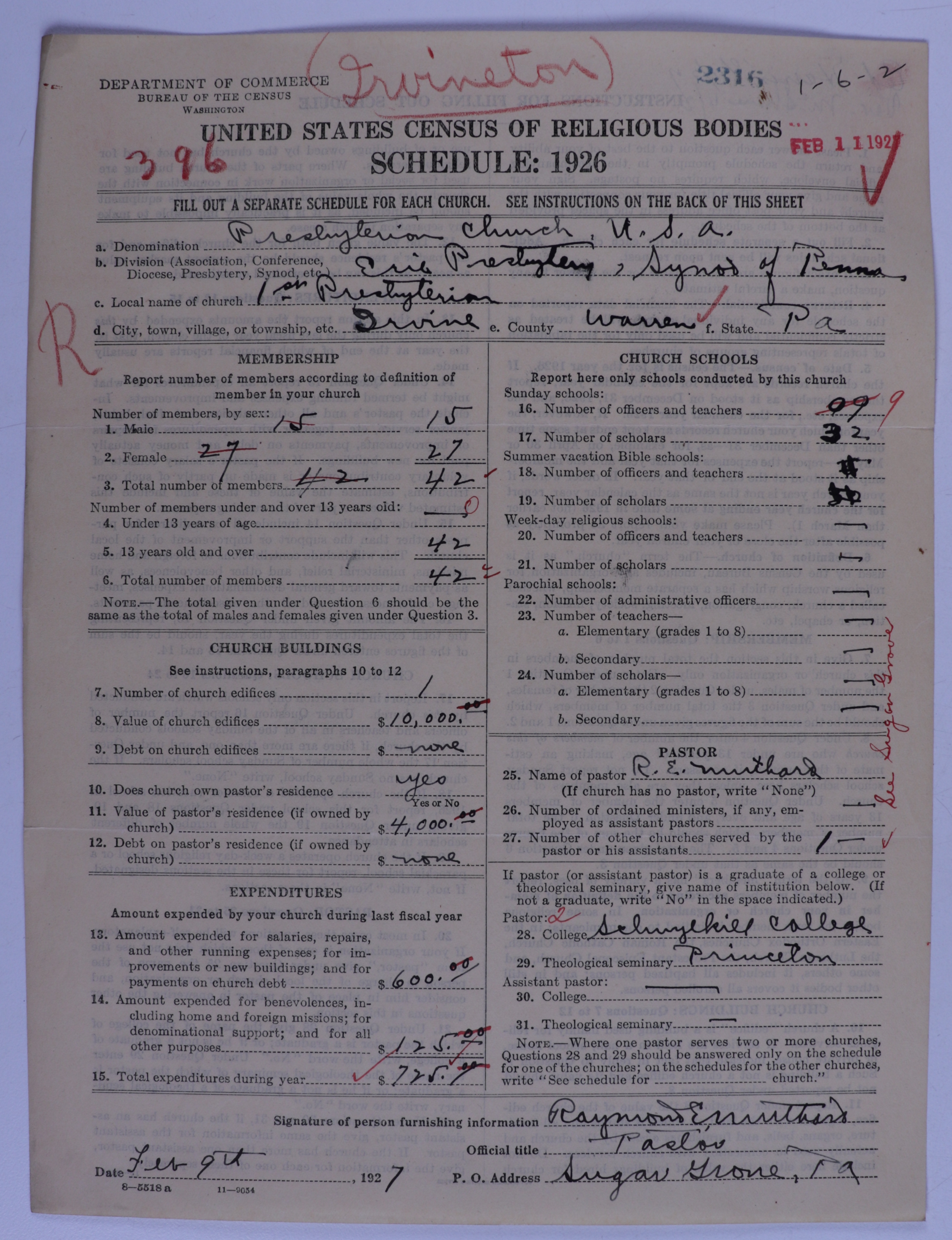 Presbyterian Church in the United States of America: 2316