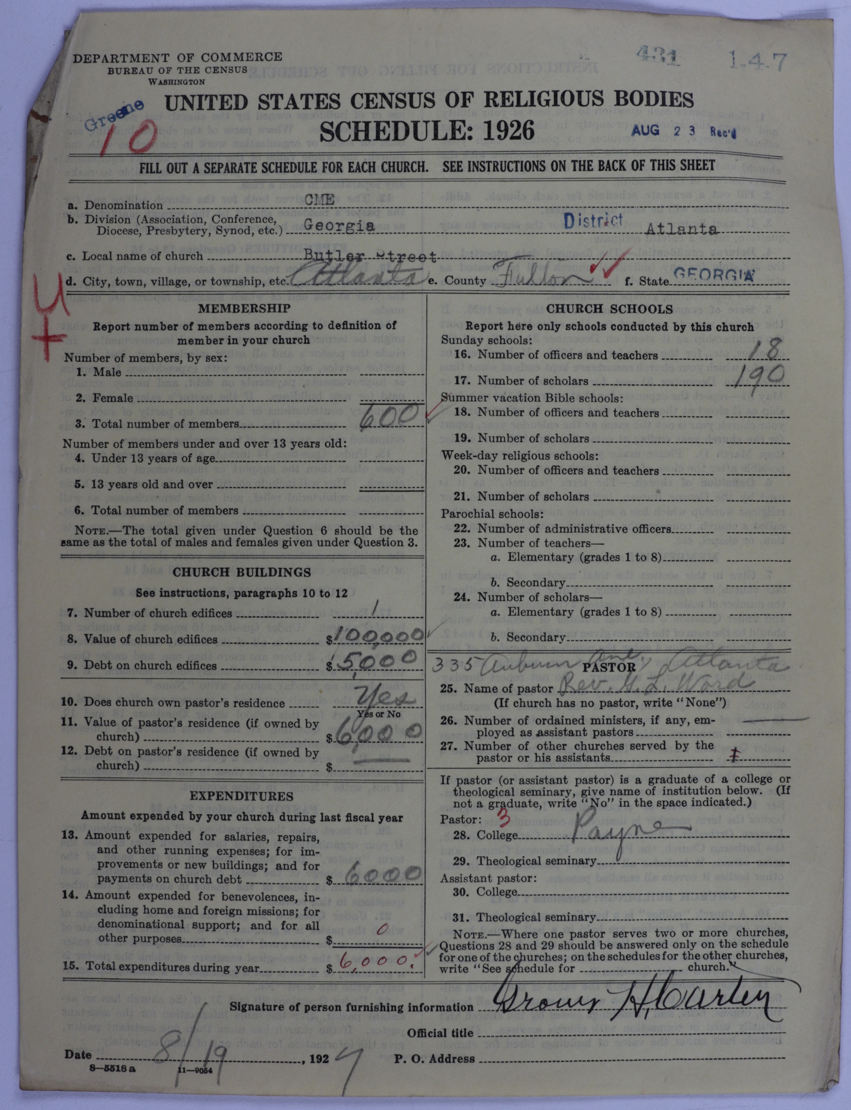 Colored Methodist Episcopal Church: 431