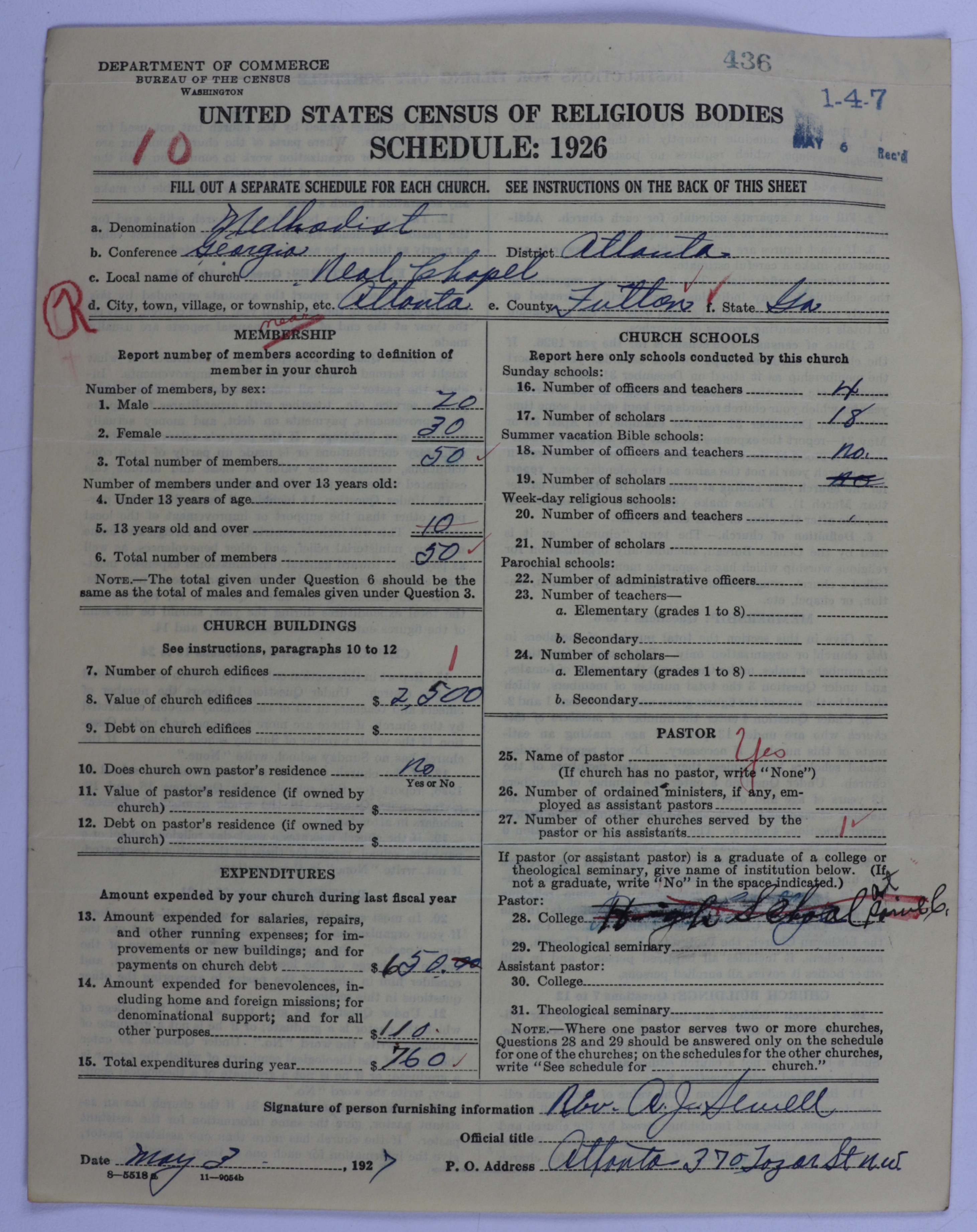 Colored Methodist Episcopal Church: 436