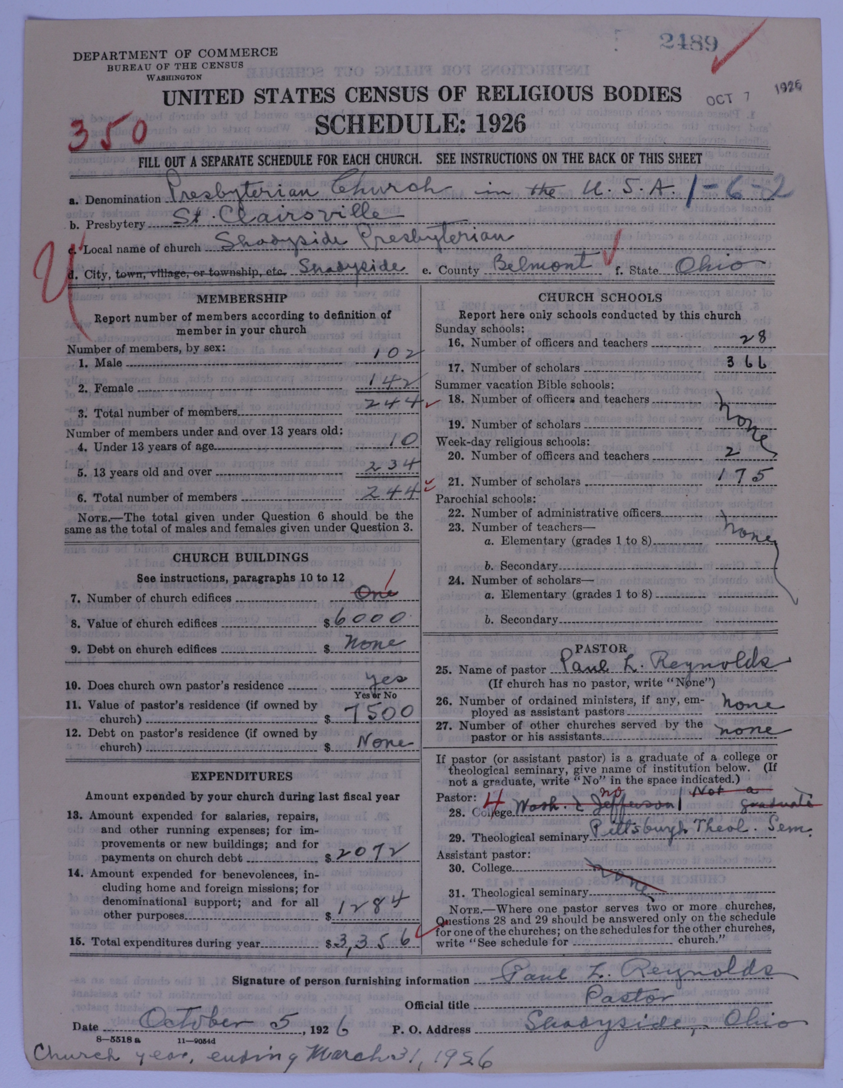 - Presbyterian Church in the United States of America: 2489