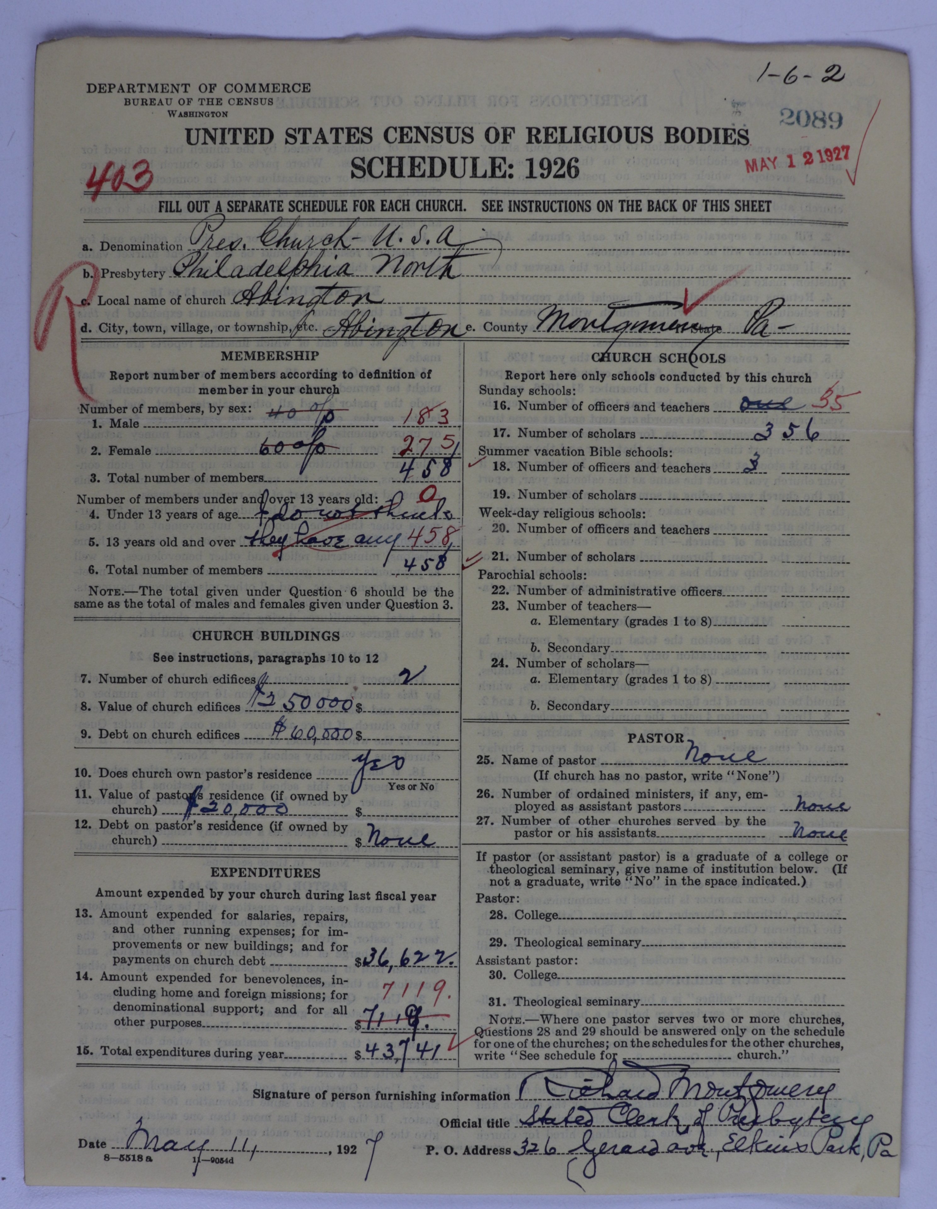 - Presbyterian Church in the United States of America: 2089