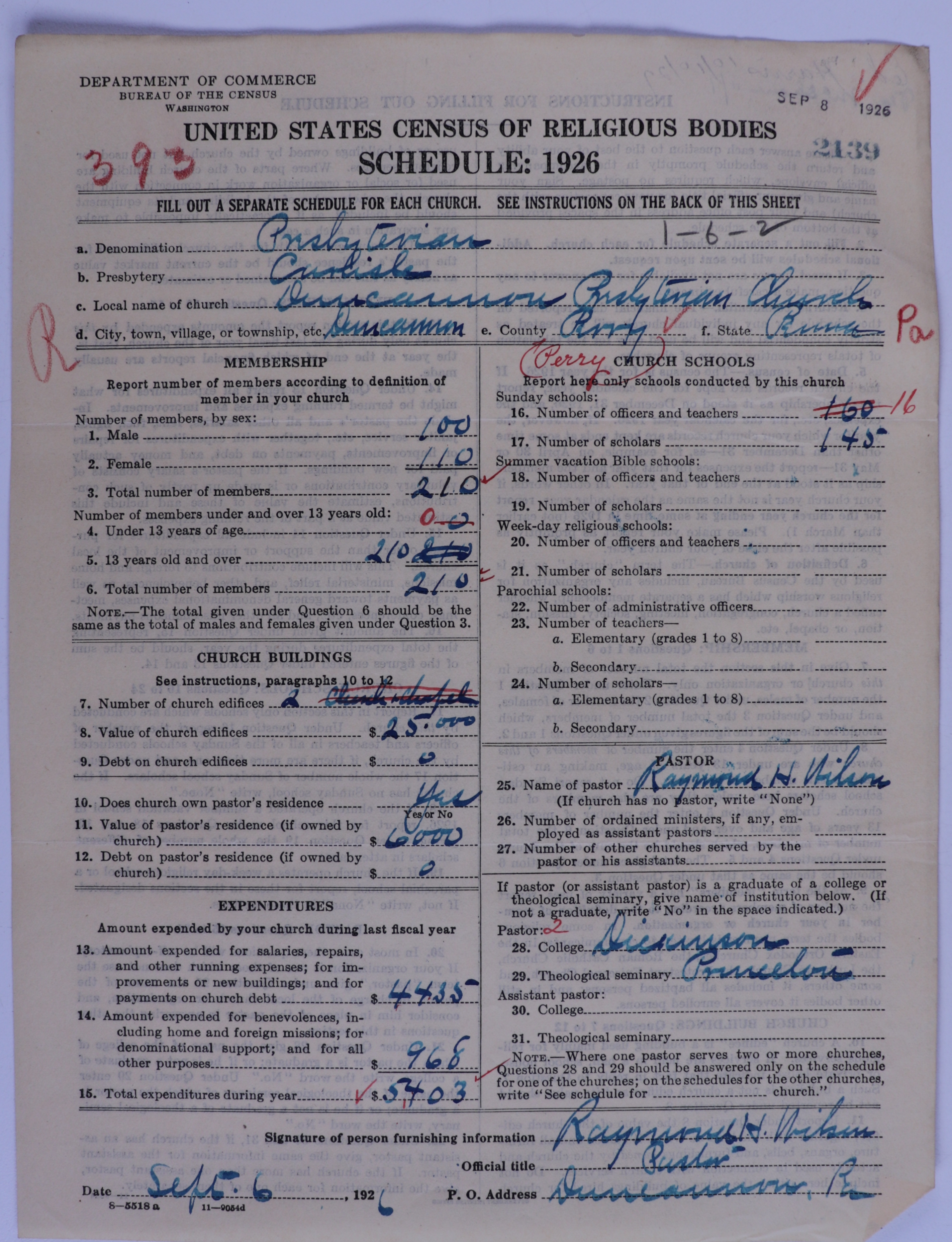 - Presbyterian Church in the United States of America: 2139
