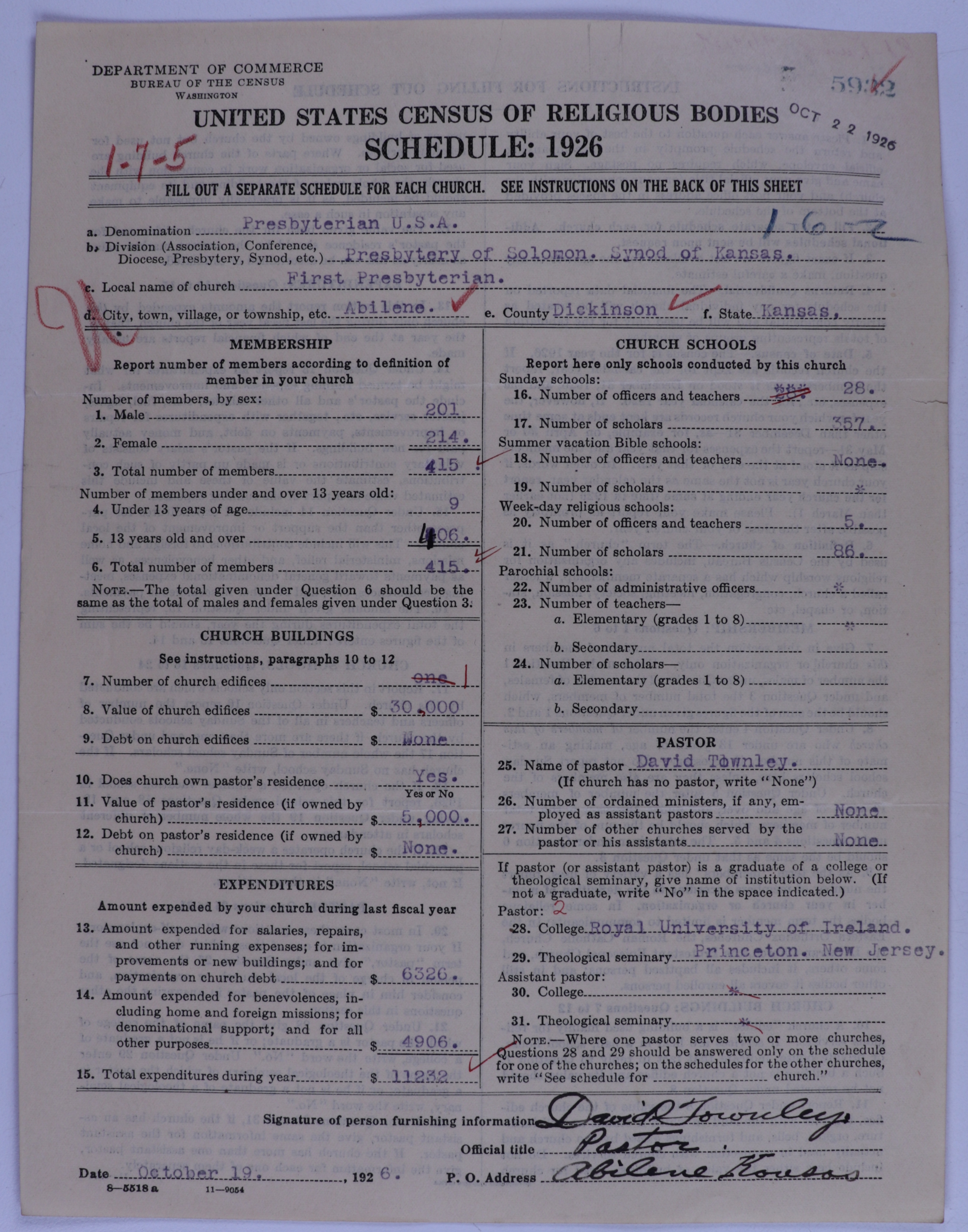 - Presbyterian Church in the United States of America: 5932