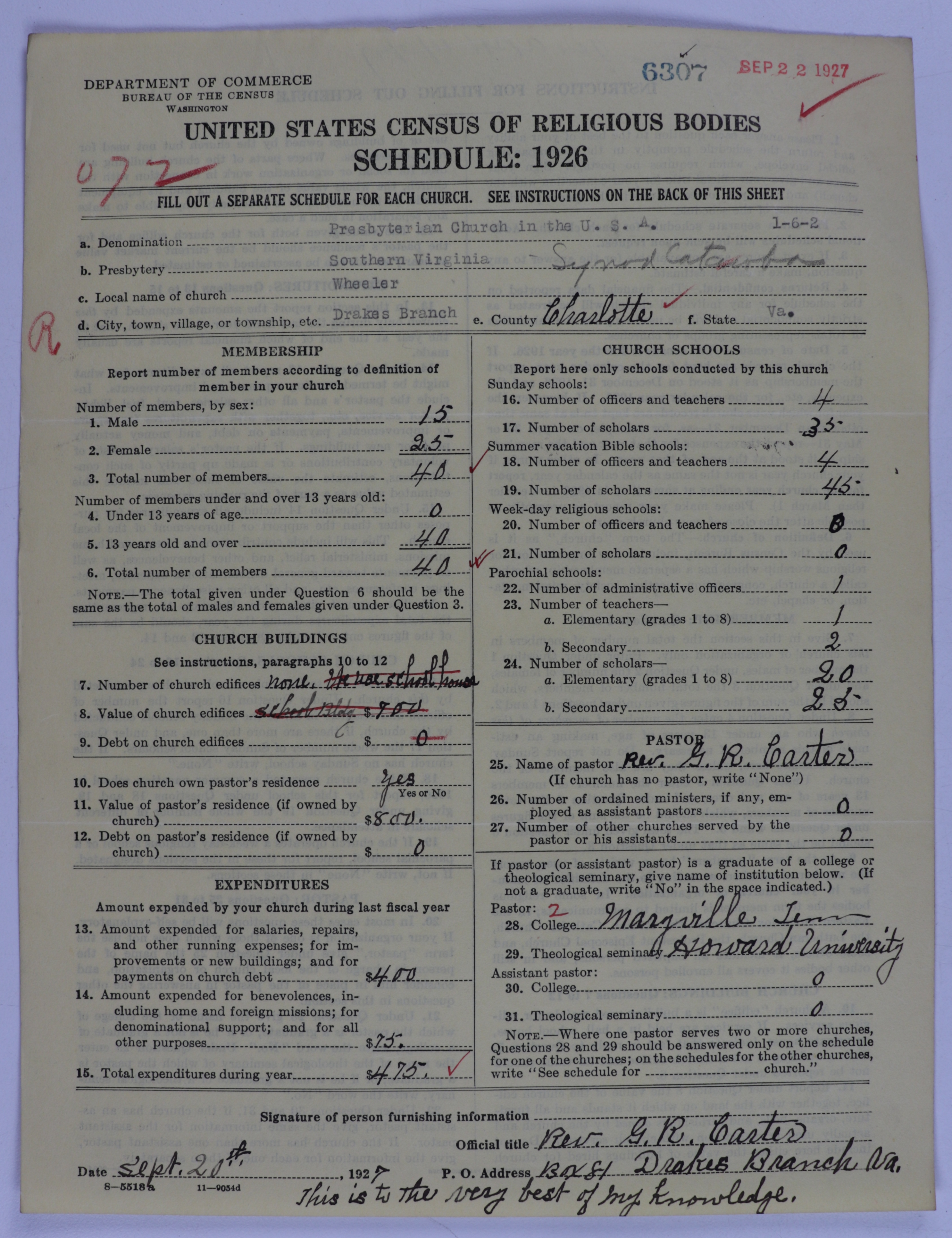 - Presbyterian Church in the United States of America: 6307