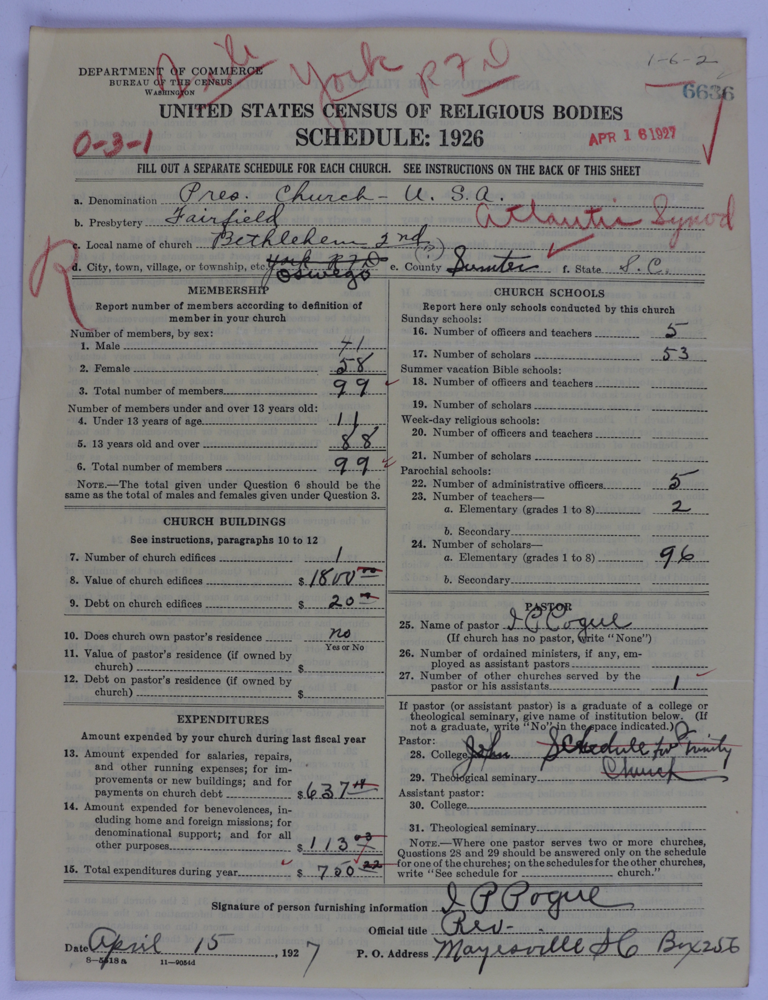 - Presbyterian Church in the United States of America: 6636