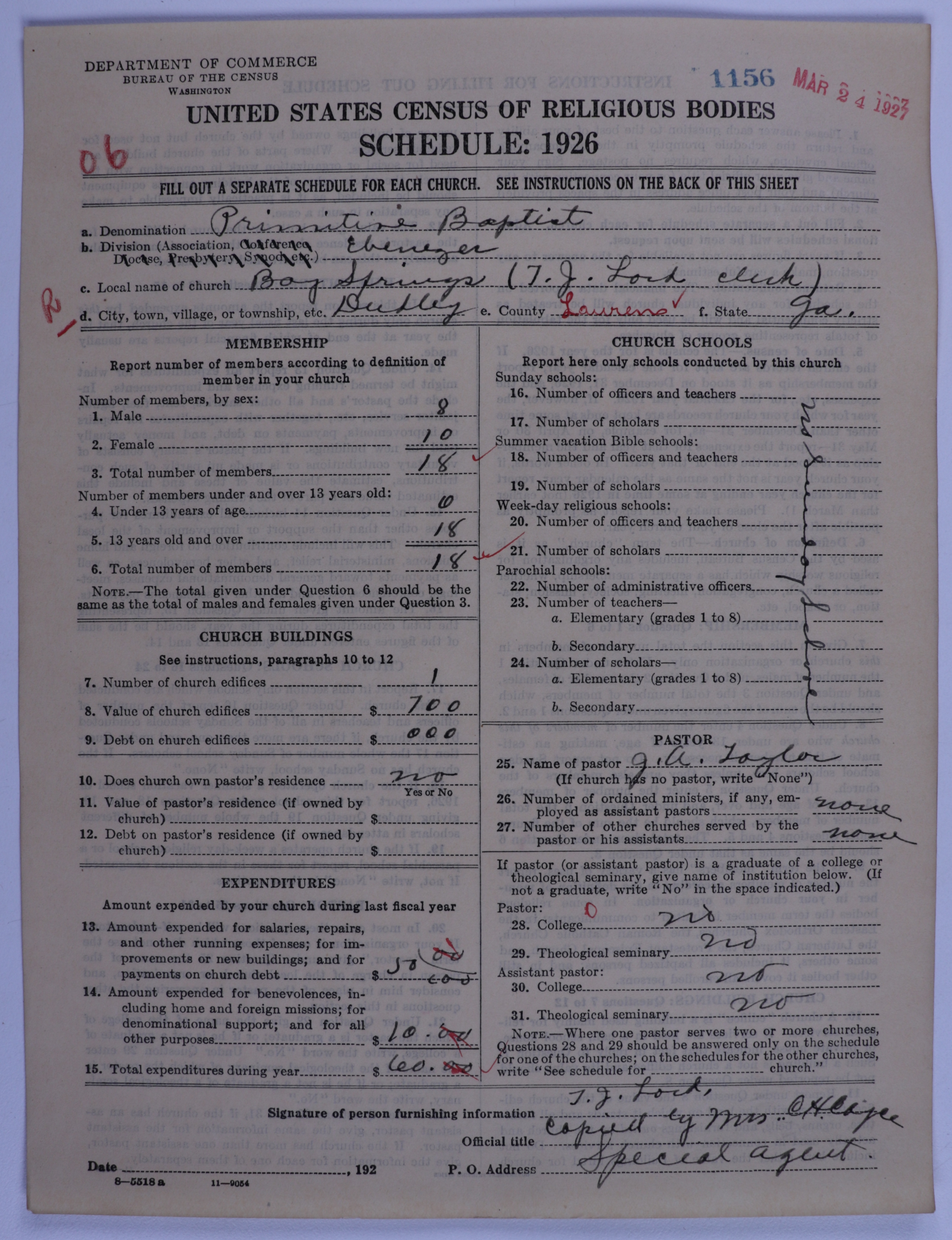 Primitive Baptists: 1156