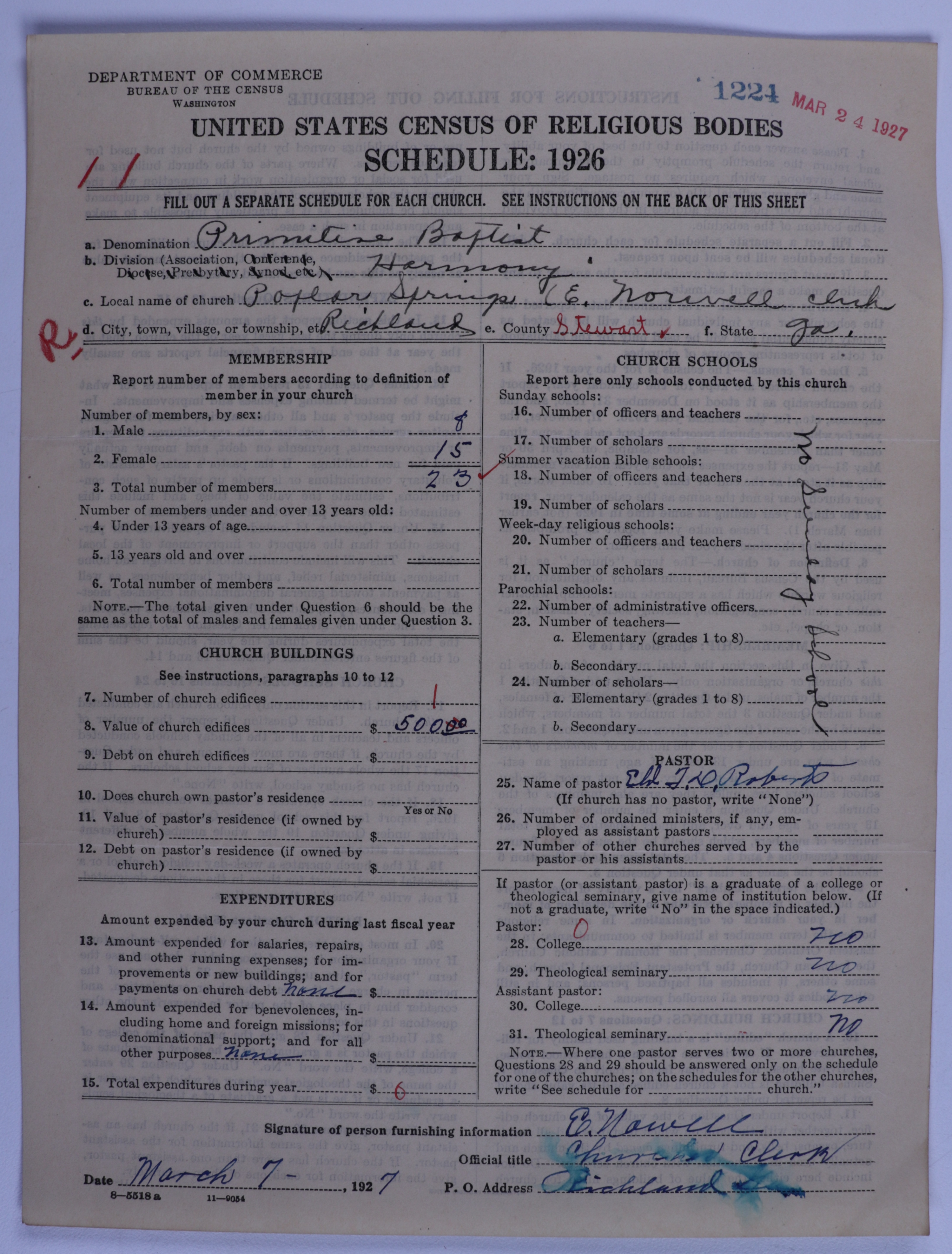 Primitive Baptists: 1224
