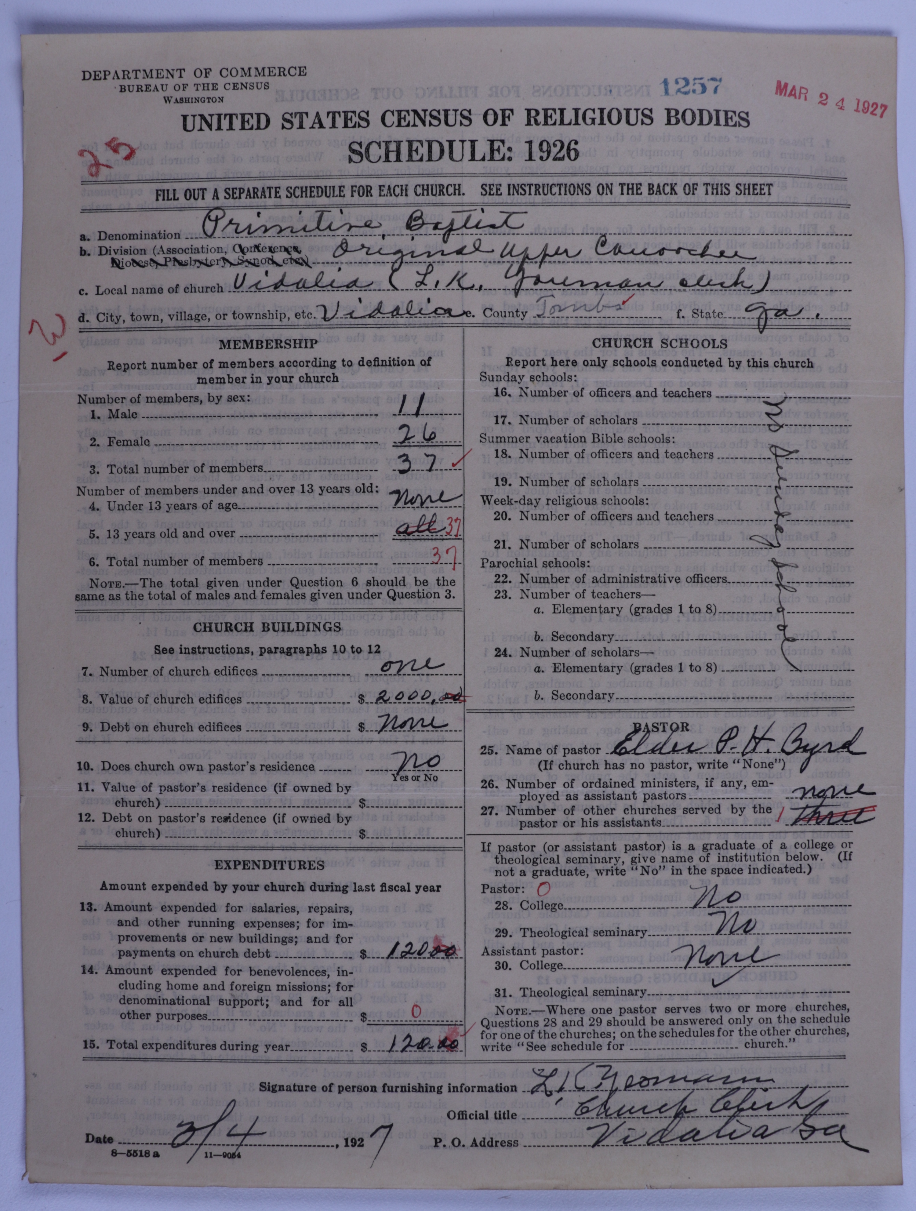 Primitive Baptists: 1257