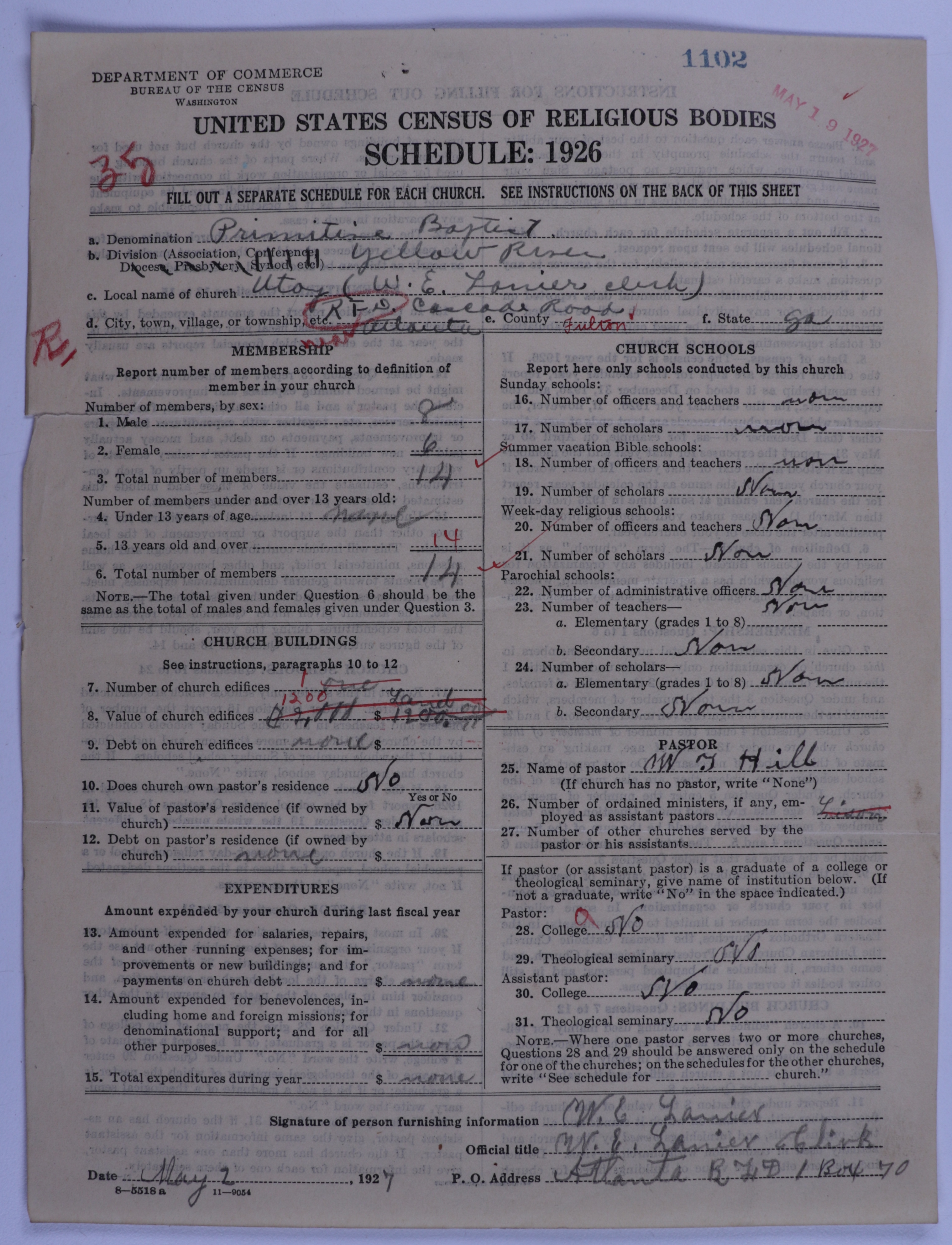 Primitive Baptists: 1102