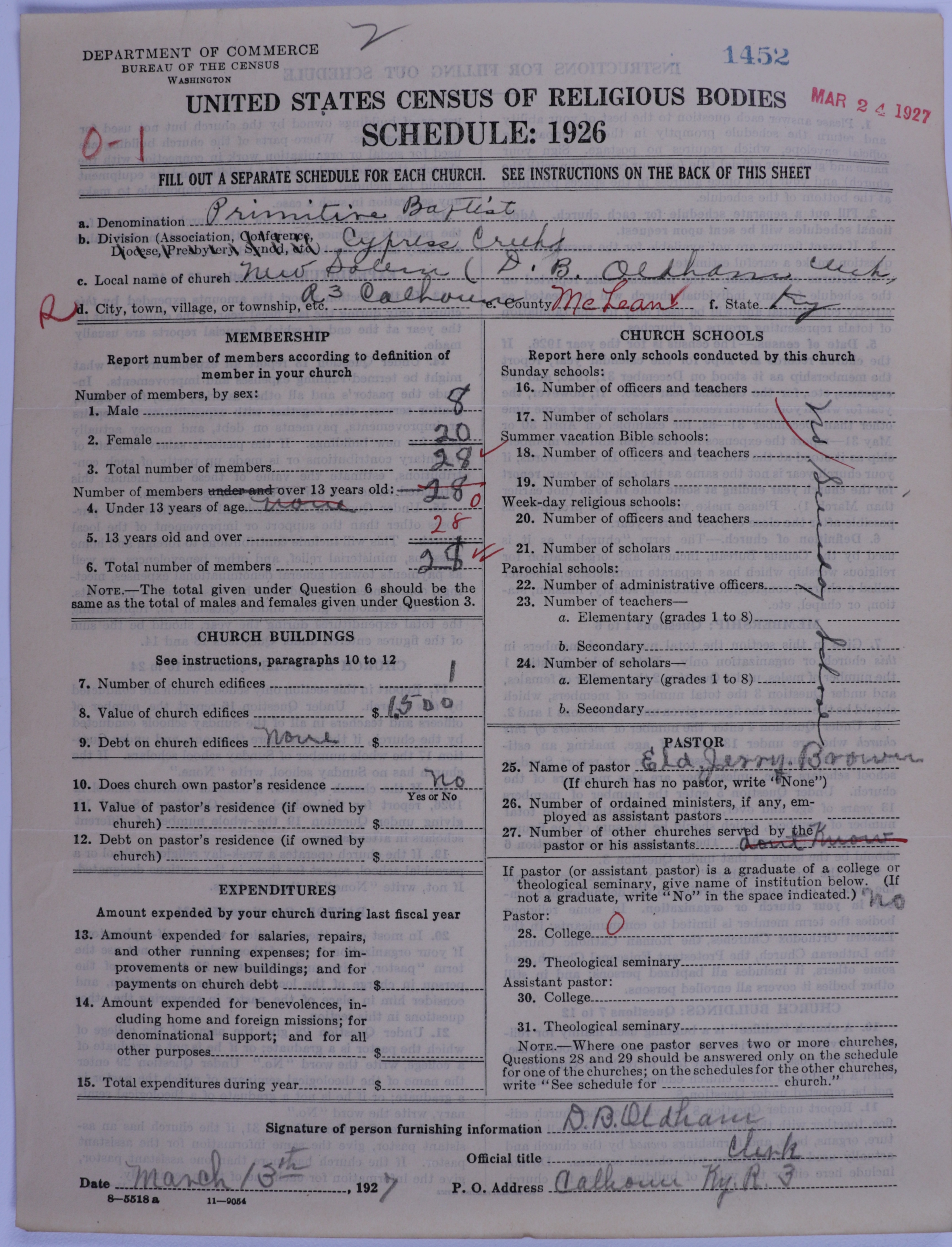 Primitive Baptists: 1452