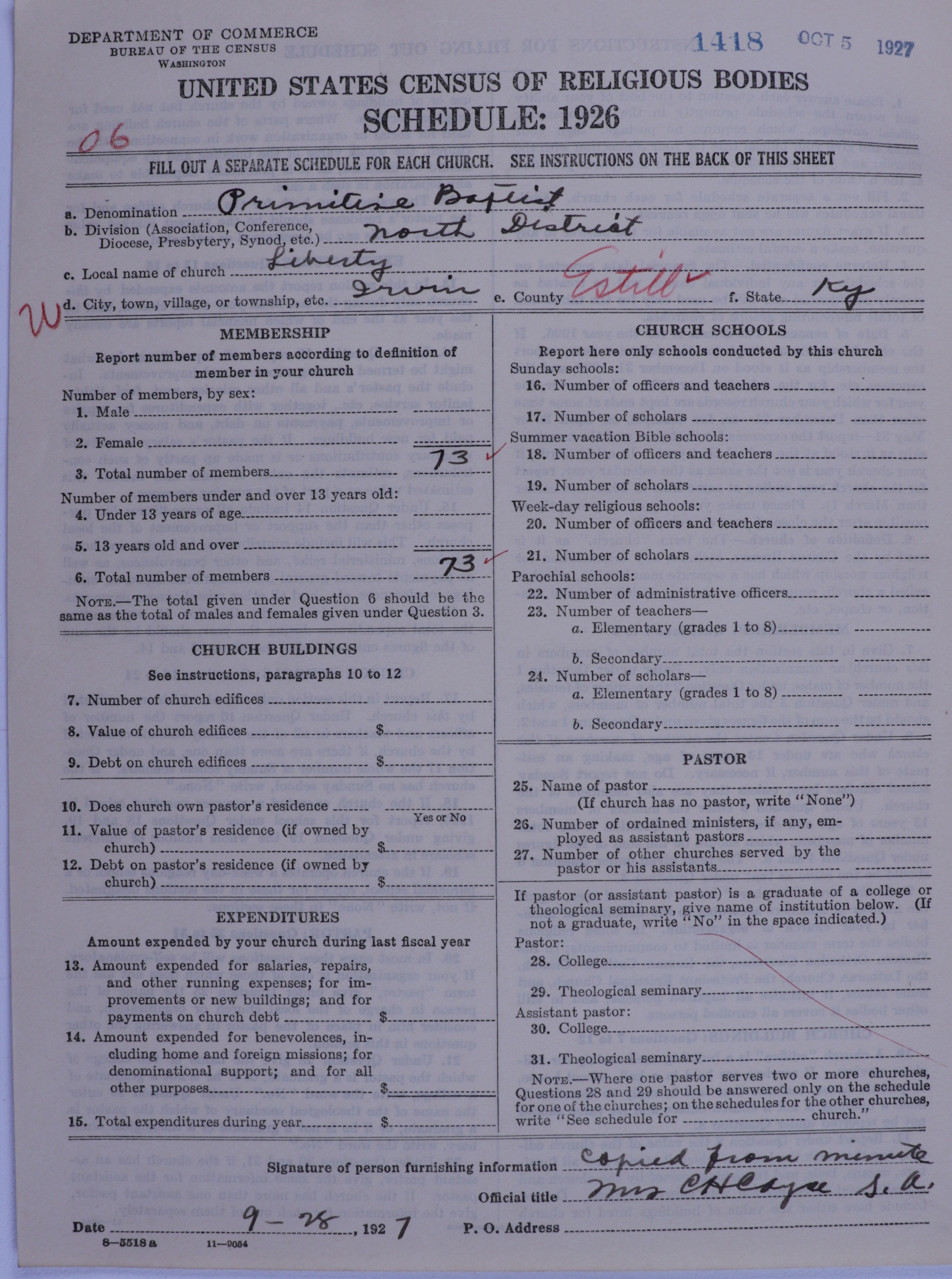 Primitive Baptists: 1418