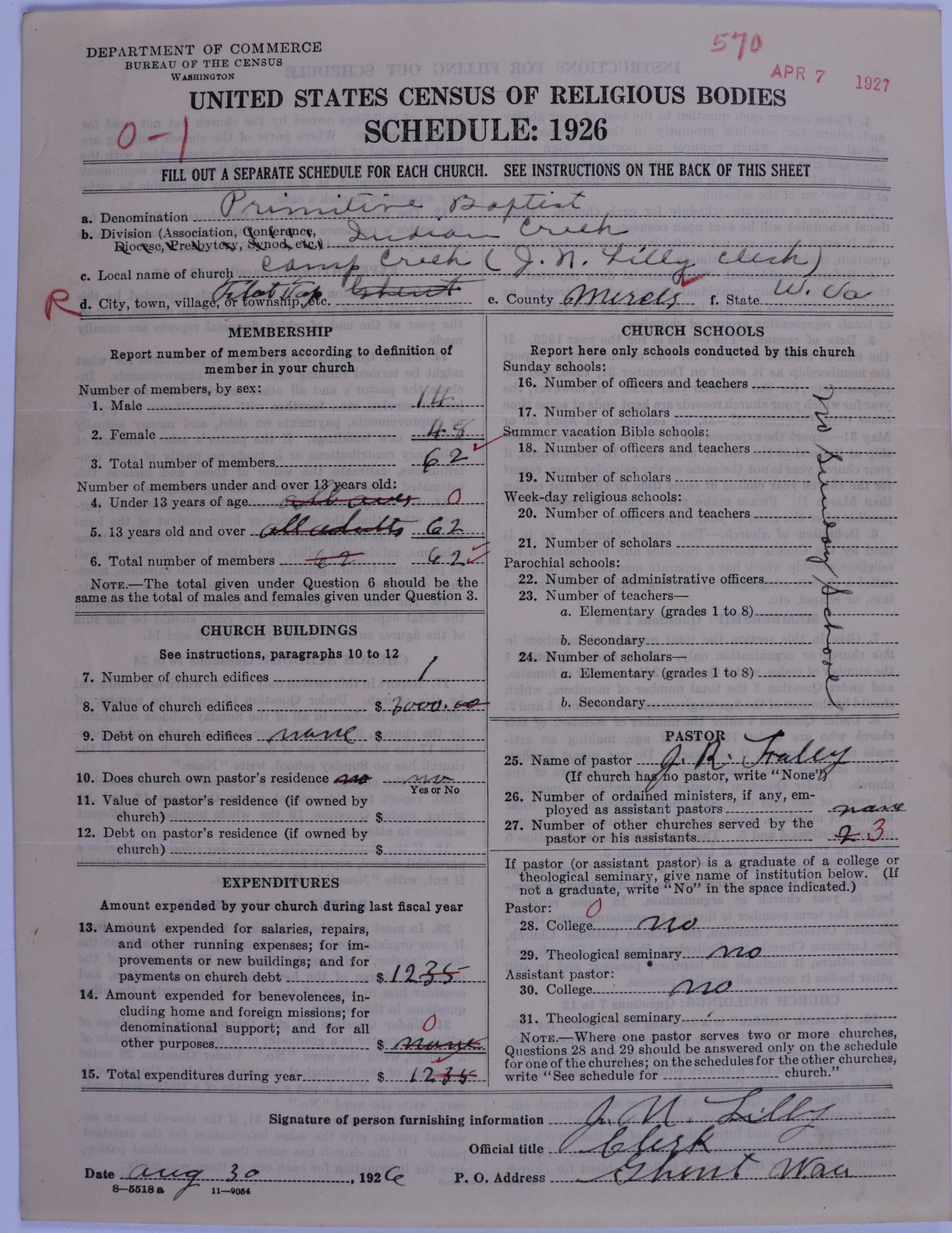Primitive Baptists: 570