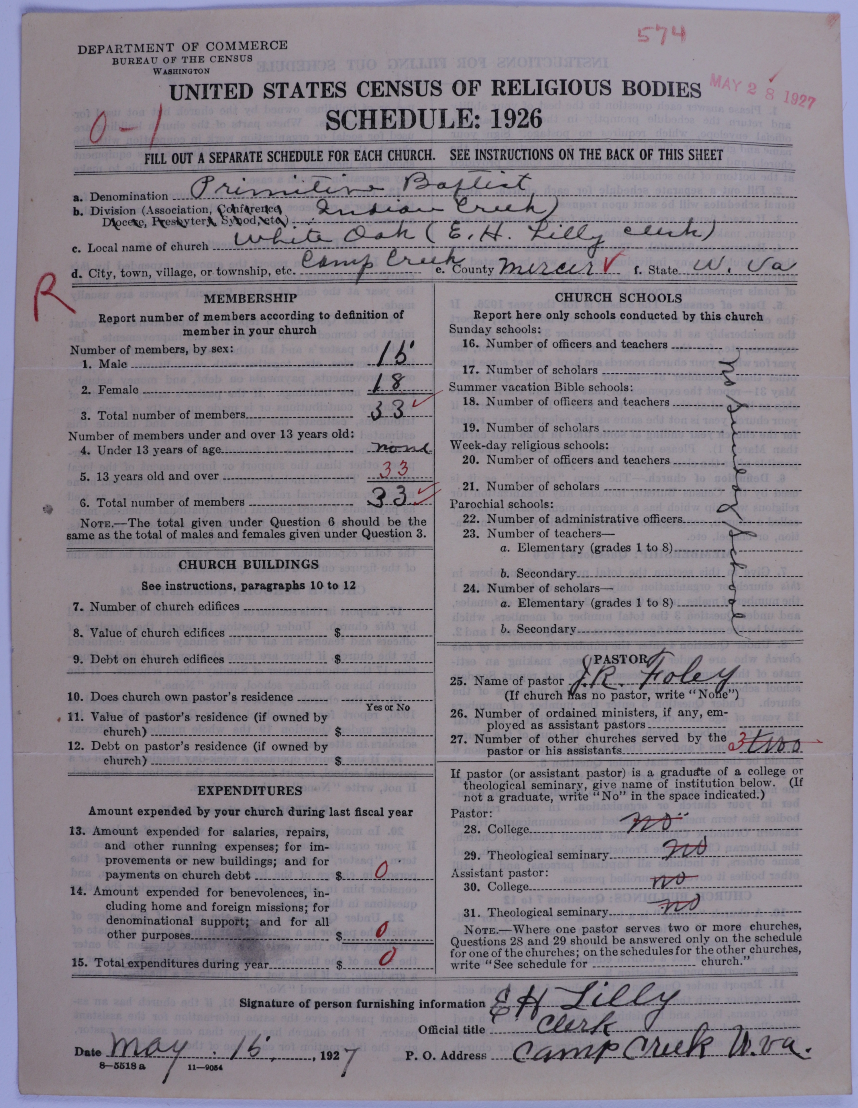 Primitive Baptists: 574