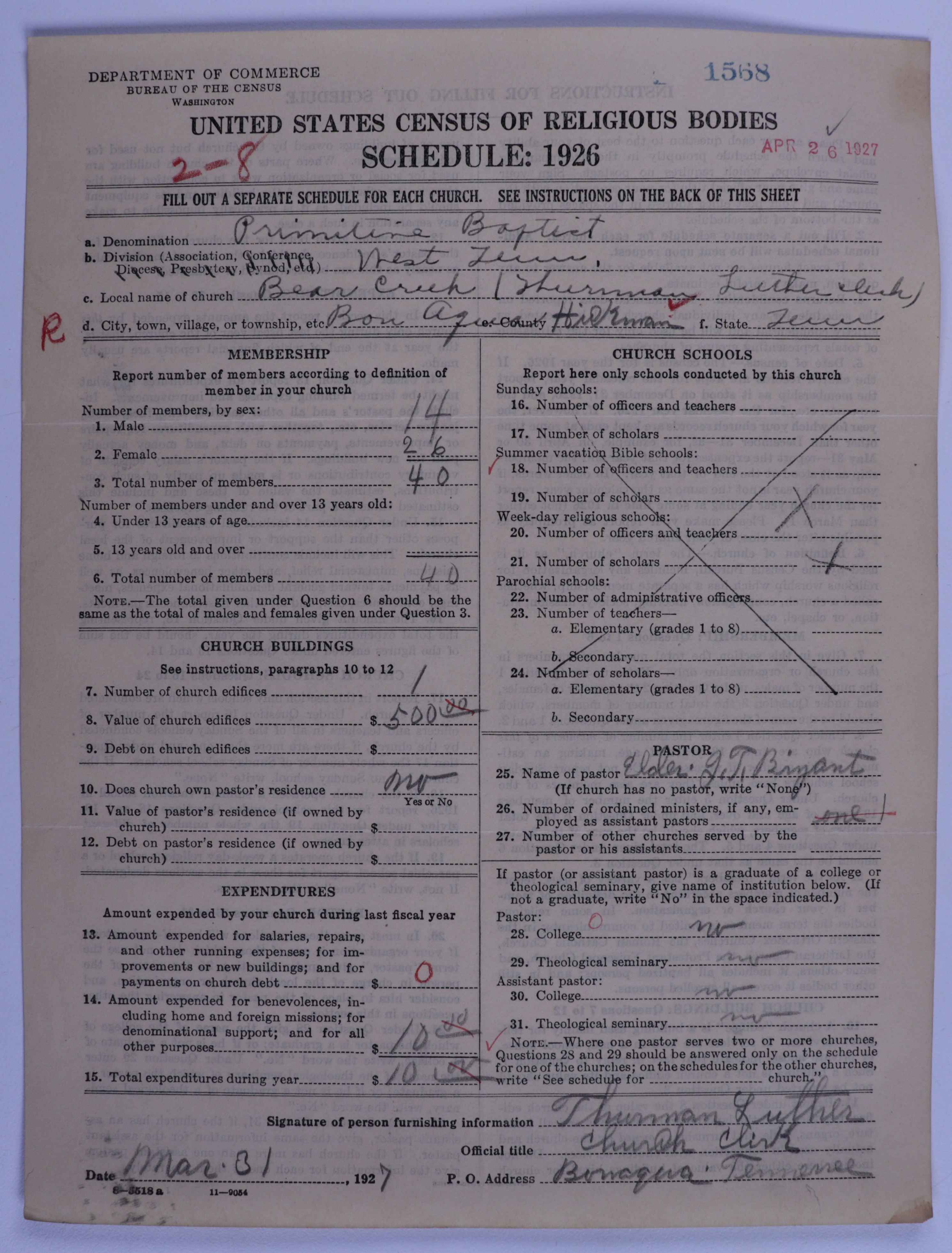 - 1926 U.S. Census of Religious Bodies