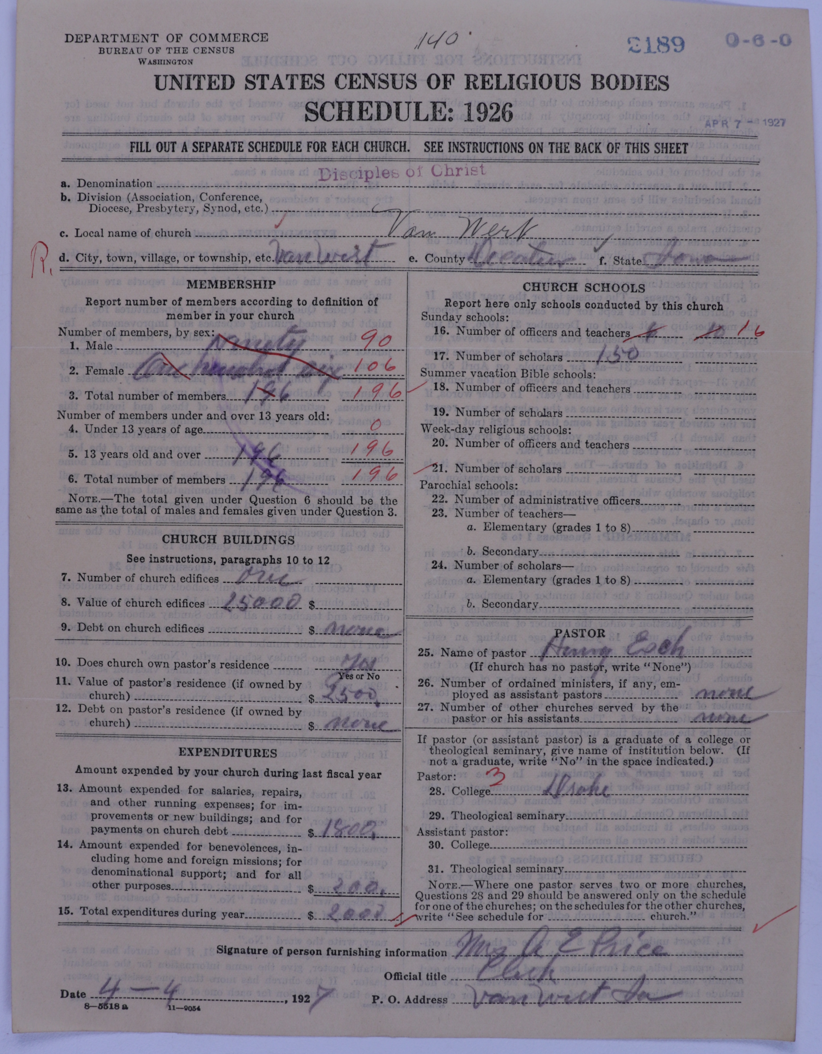 - 1926 U.S. Census of Religious Bodies
