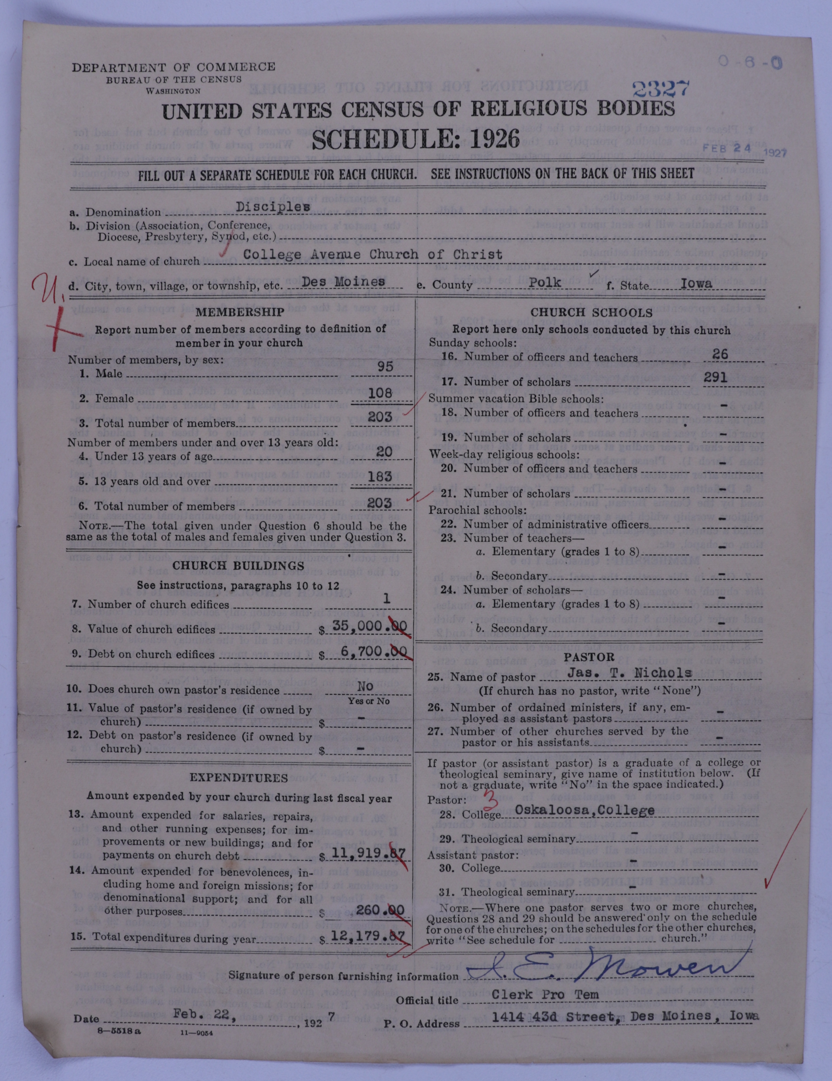 - Disciples of Christ: 2327