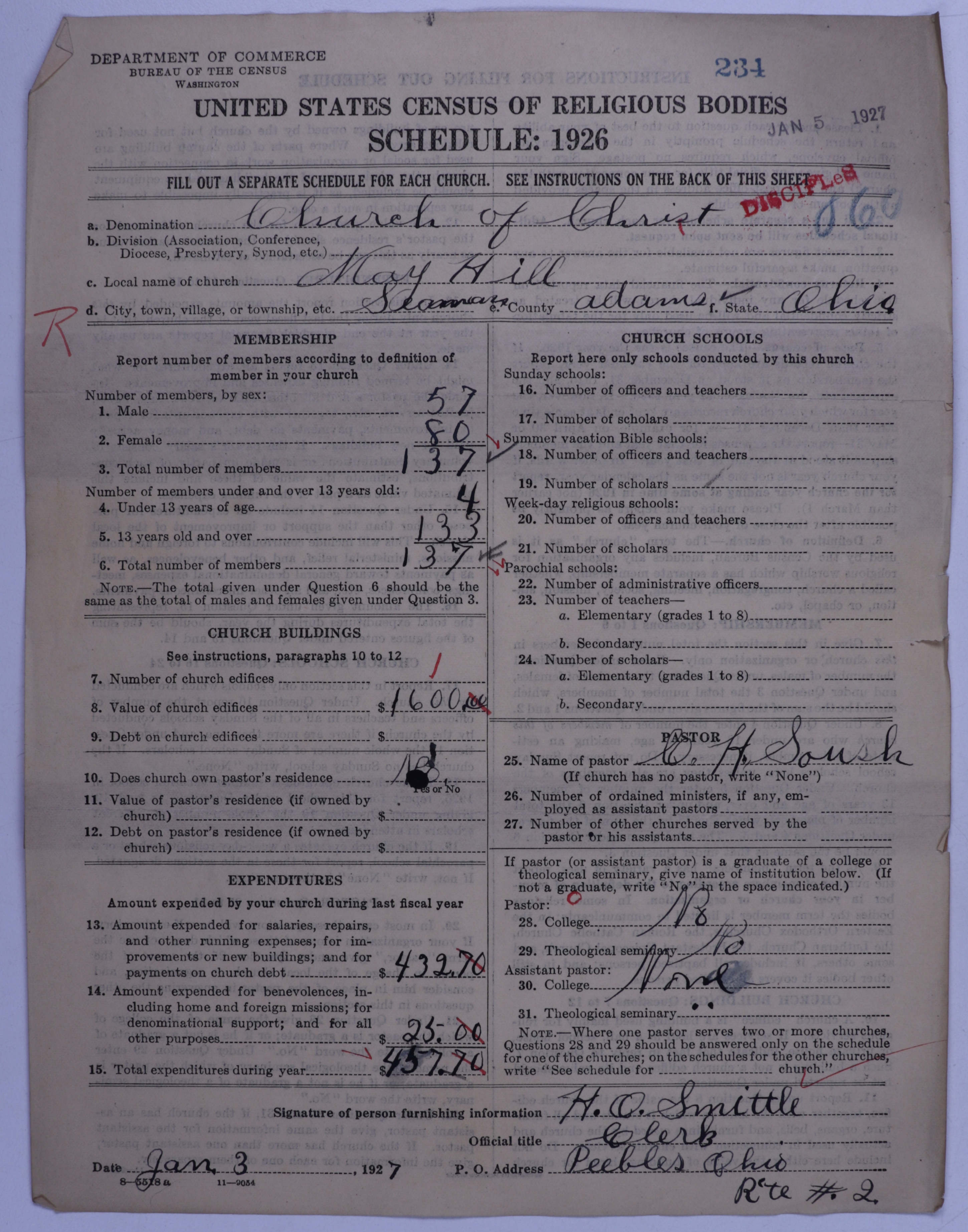 - Disciples of Christ: 234