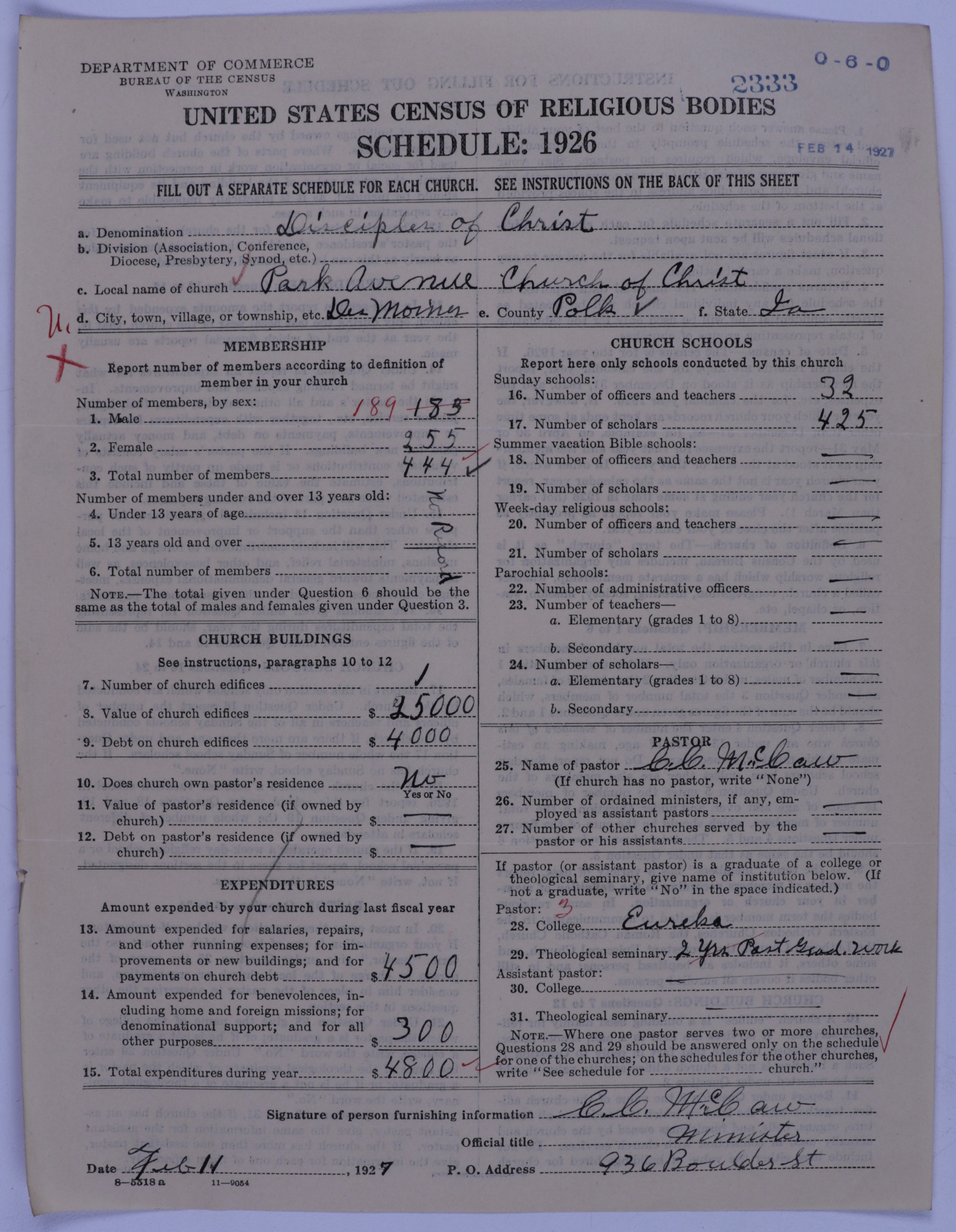 - Disciples of Christ: 2333
