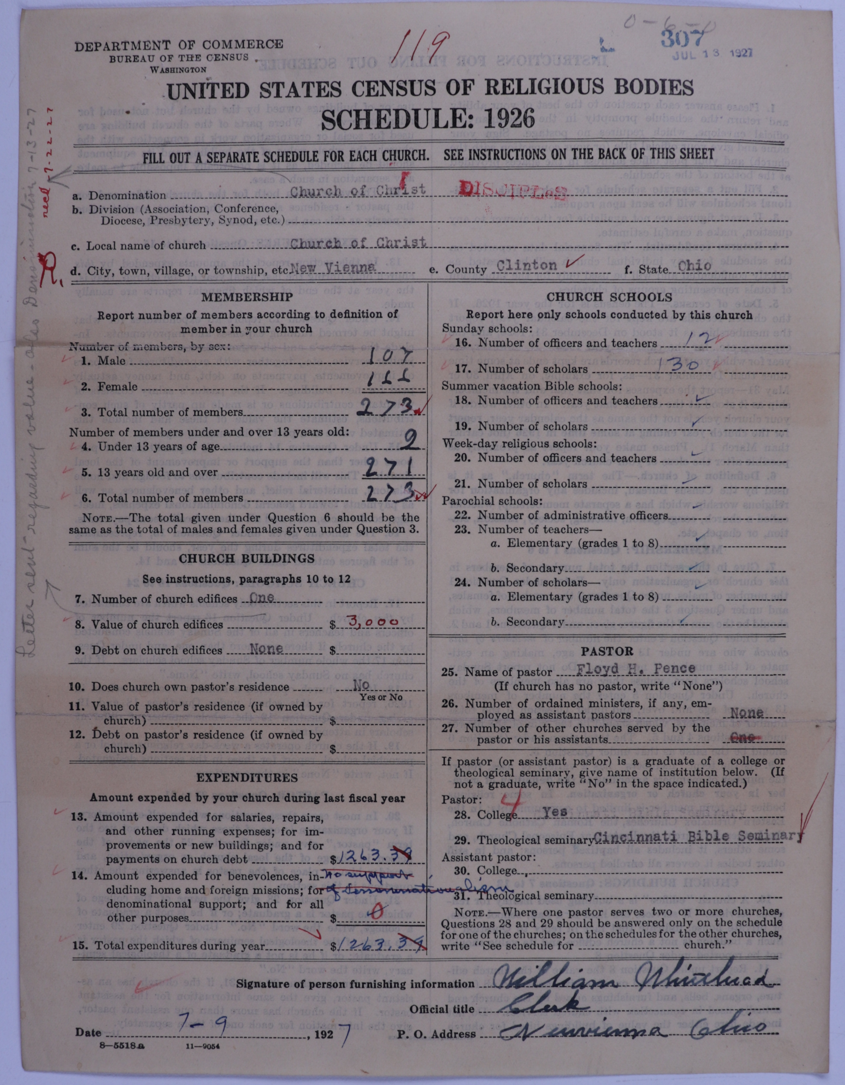 - Disciples of Christ: 307