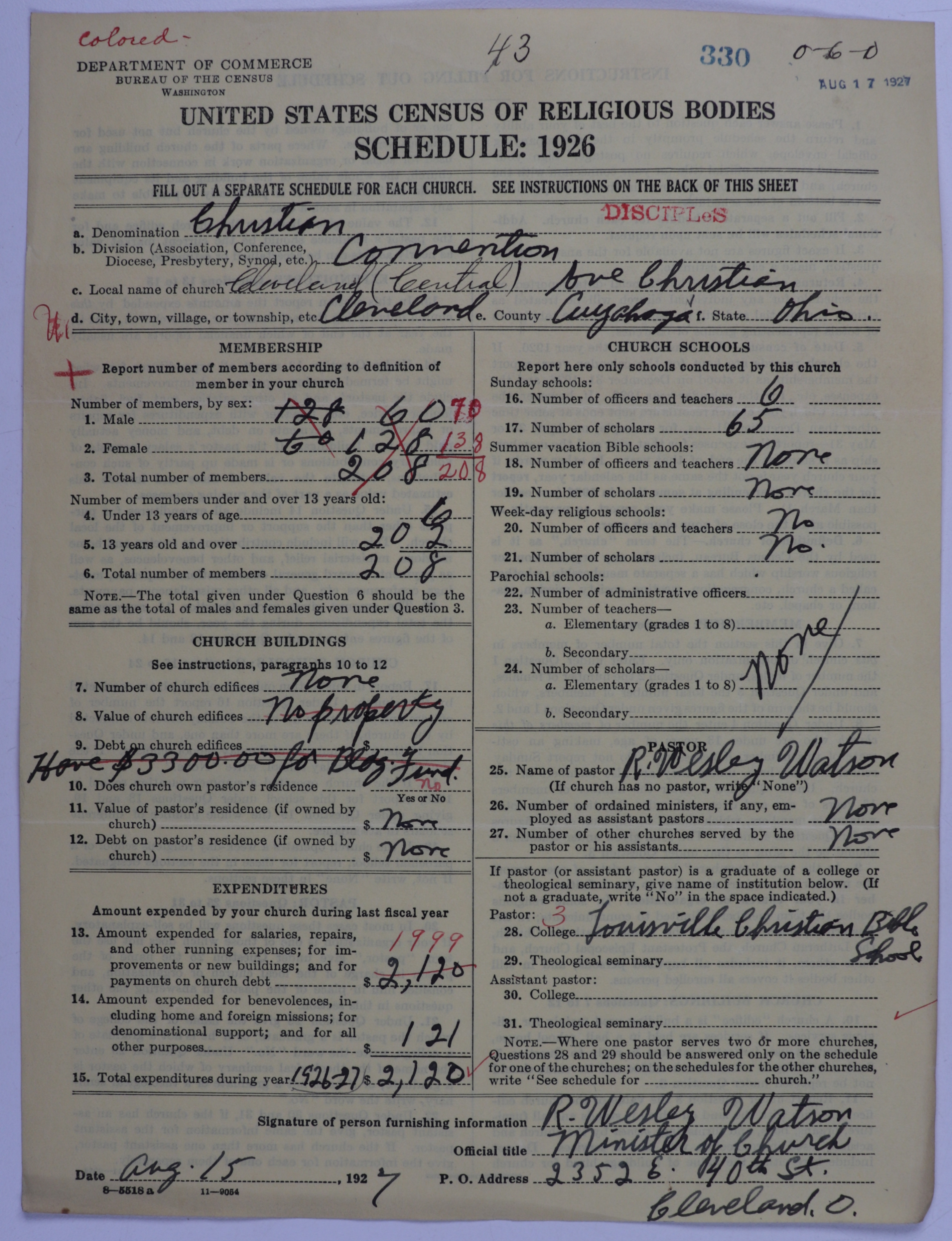- Disciples of Christ: 330