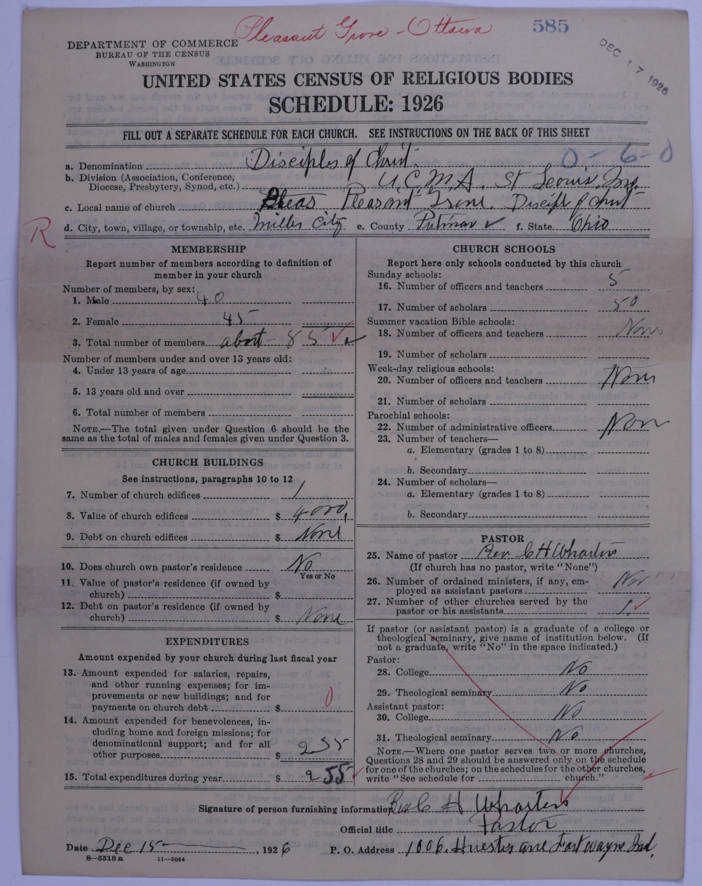 - Disciples of Christ: 585