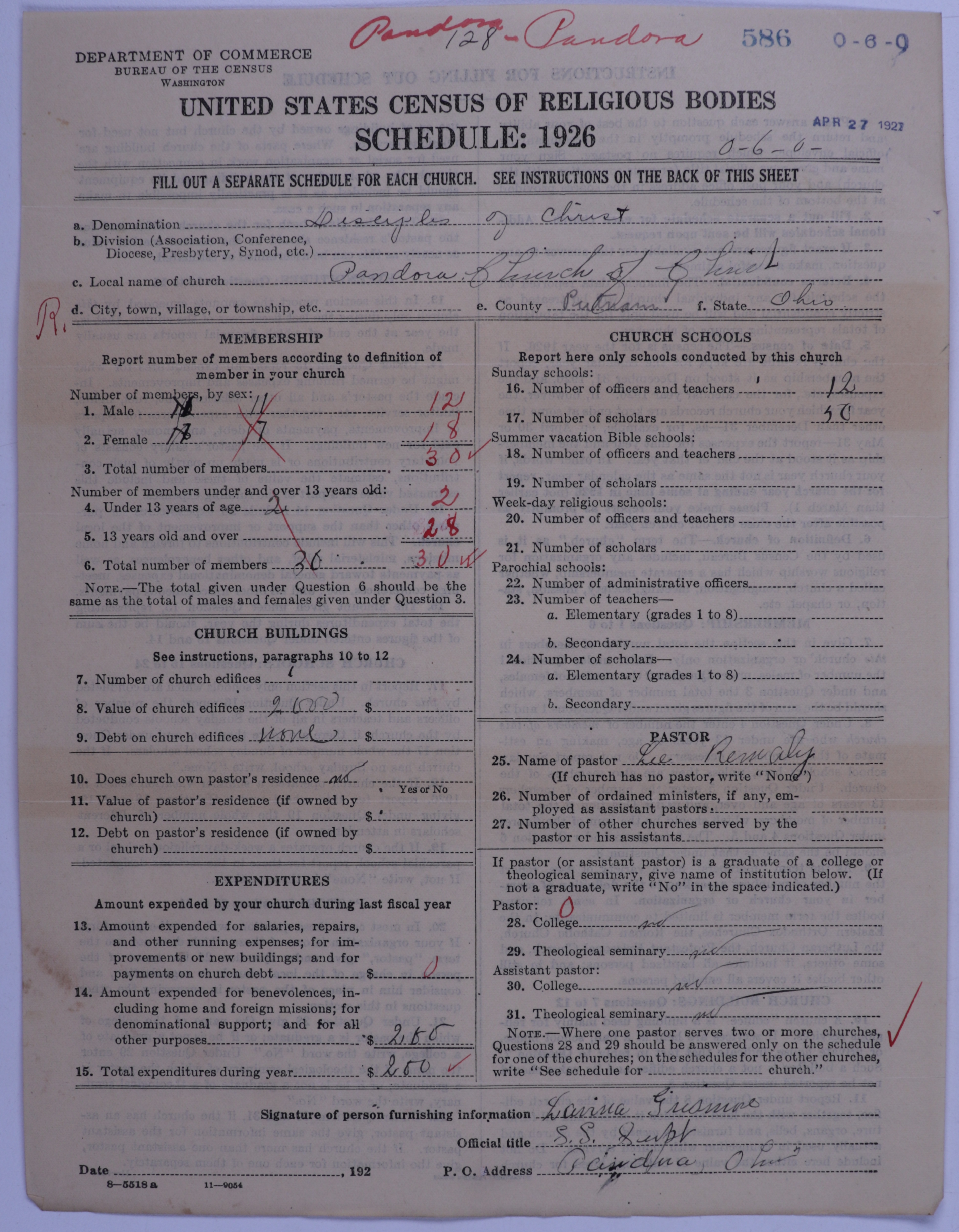 - Disciples of Christ: 586