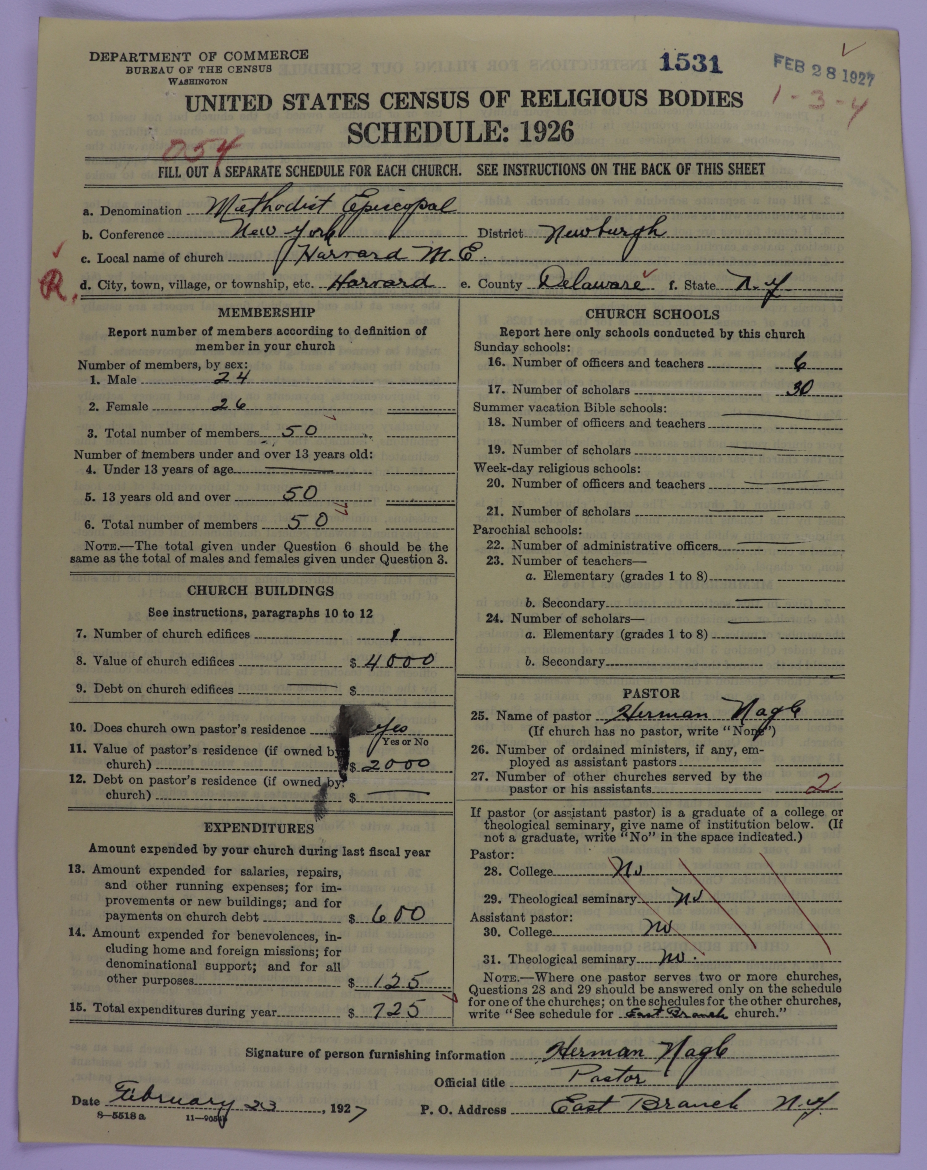 - Methodist Episcopal Church: 1531