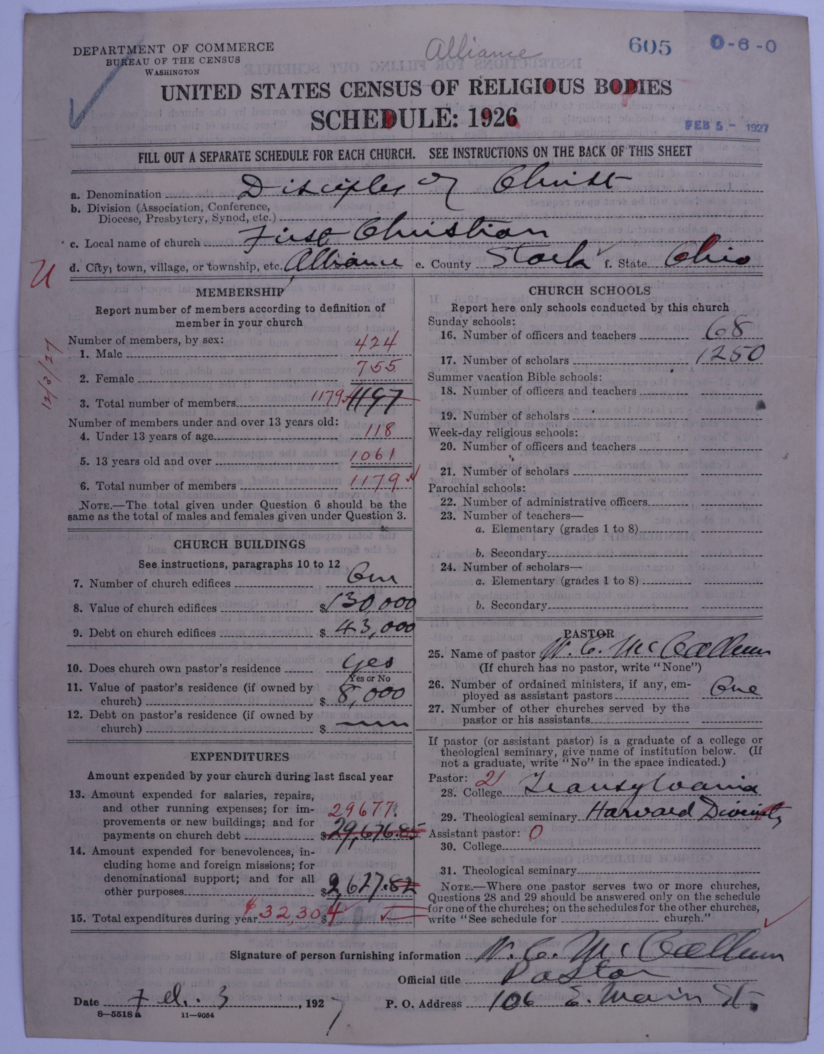 - Disciples of Christ: 605