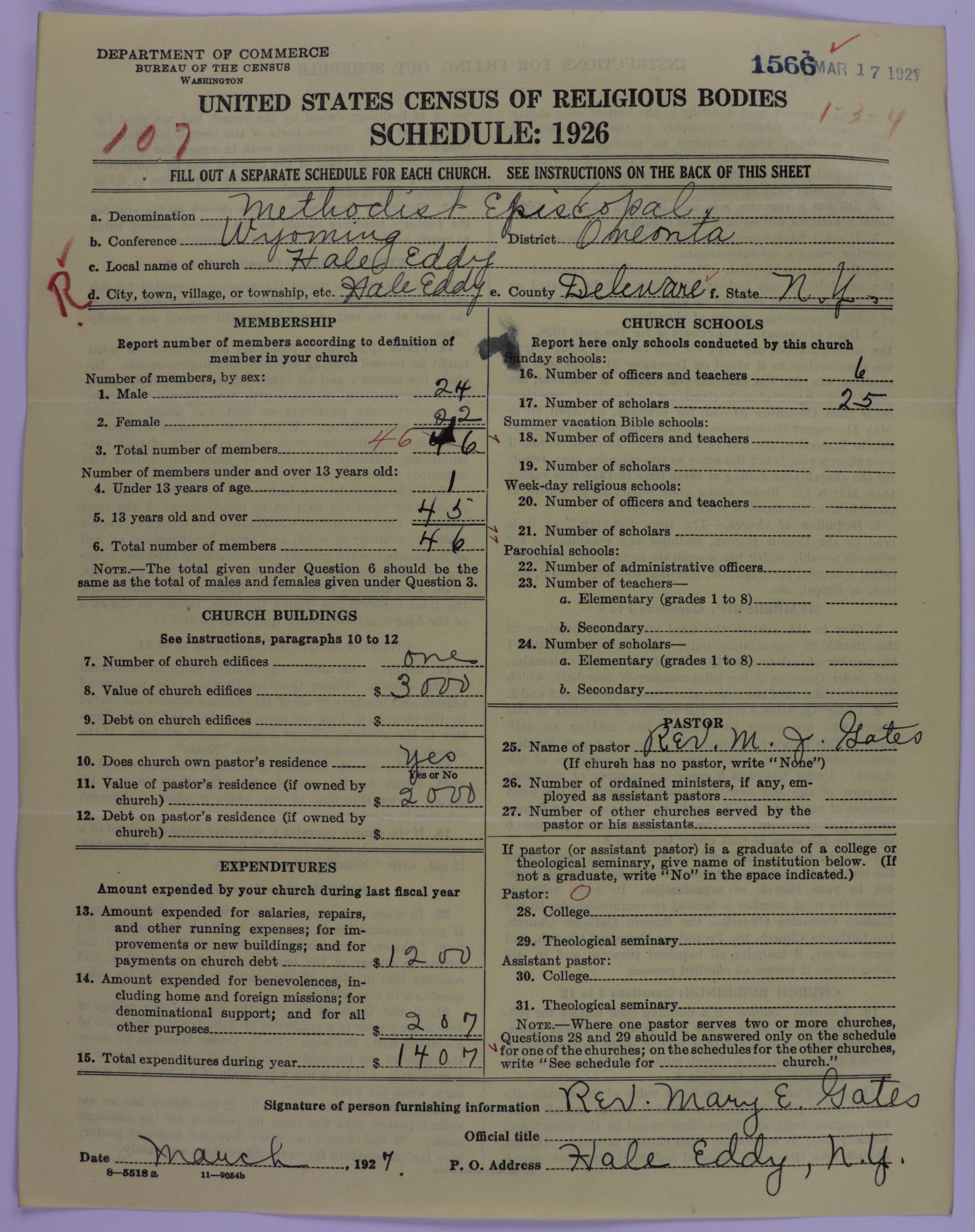 Methodist Episcopal Church: 1566