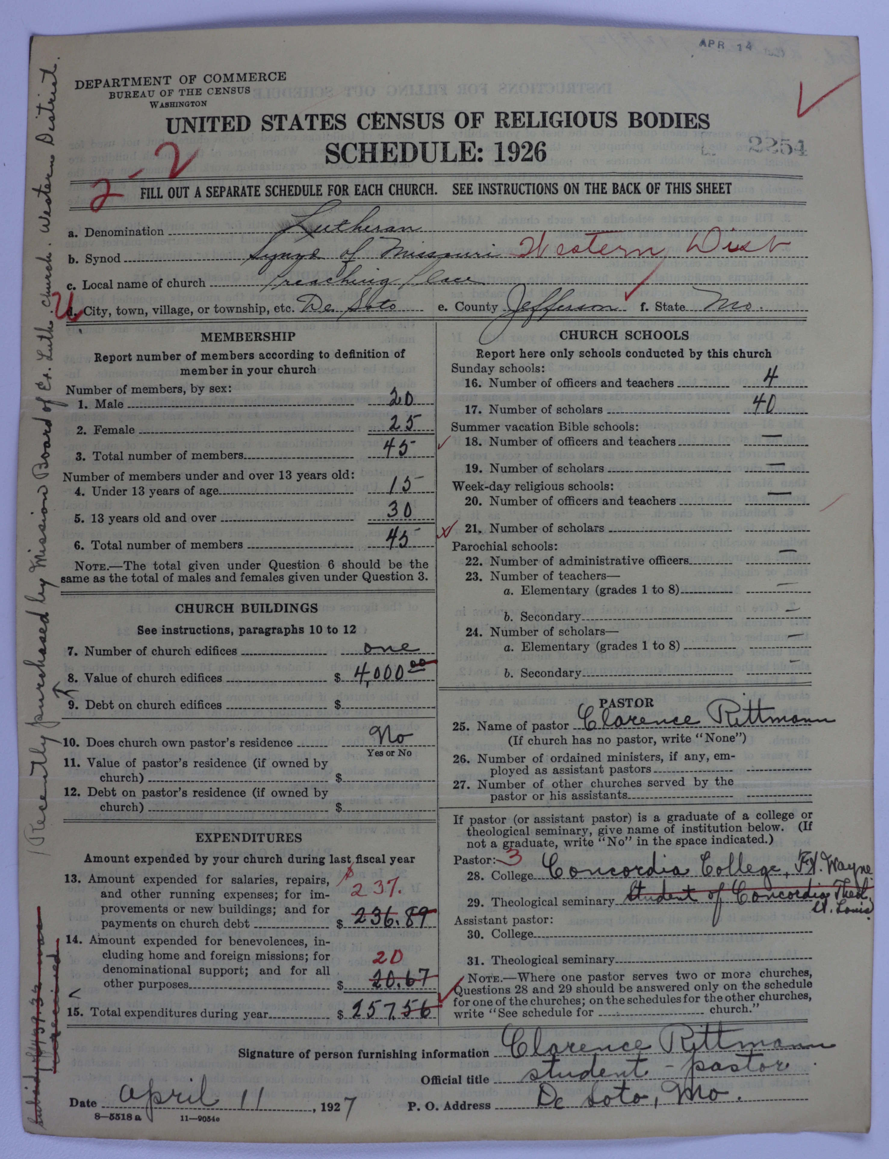 - Evangelical Lutheran Synodical Conference of America: Evangelical Lutheran Synod of Missouri, Ohio, and Other States: 2254