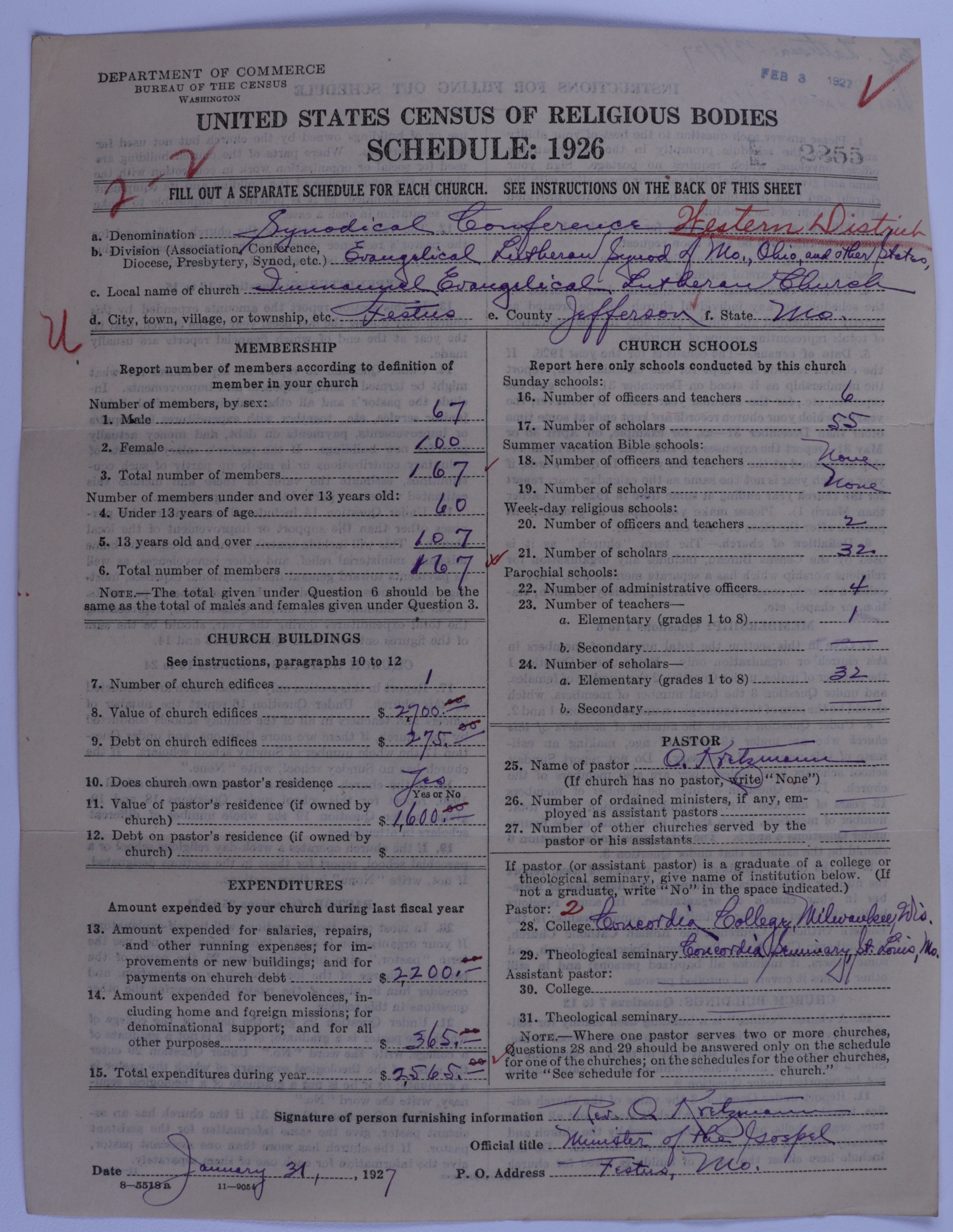 - Evangelical Lutheran Synodical Conference of America: Evangelical Lutheran Synod of Missouri, Ohio, and Other States: 2255