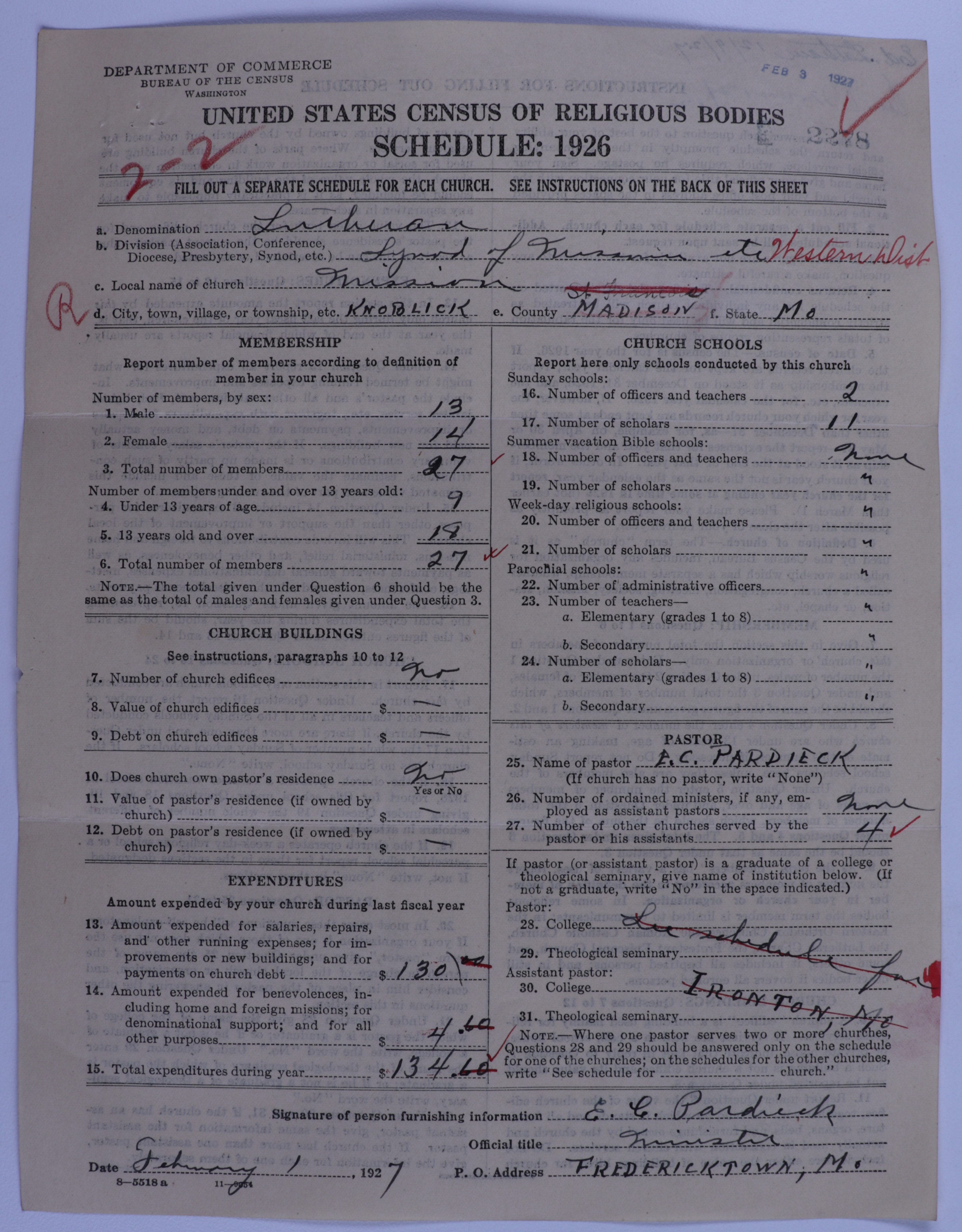 - Evangelical Lutheran Synodical Conference of America: Evangelical Lutheran Synod of Missouri, Ohio, and Other States: 2278