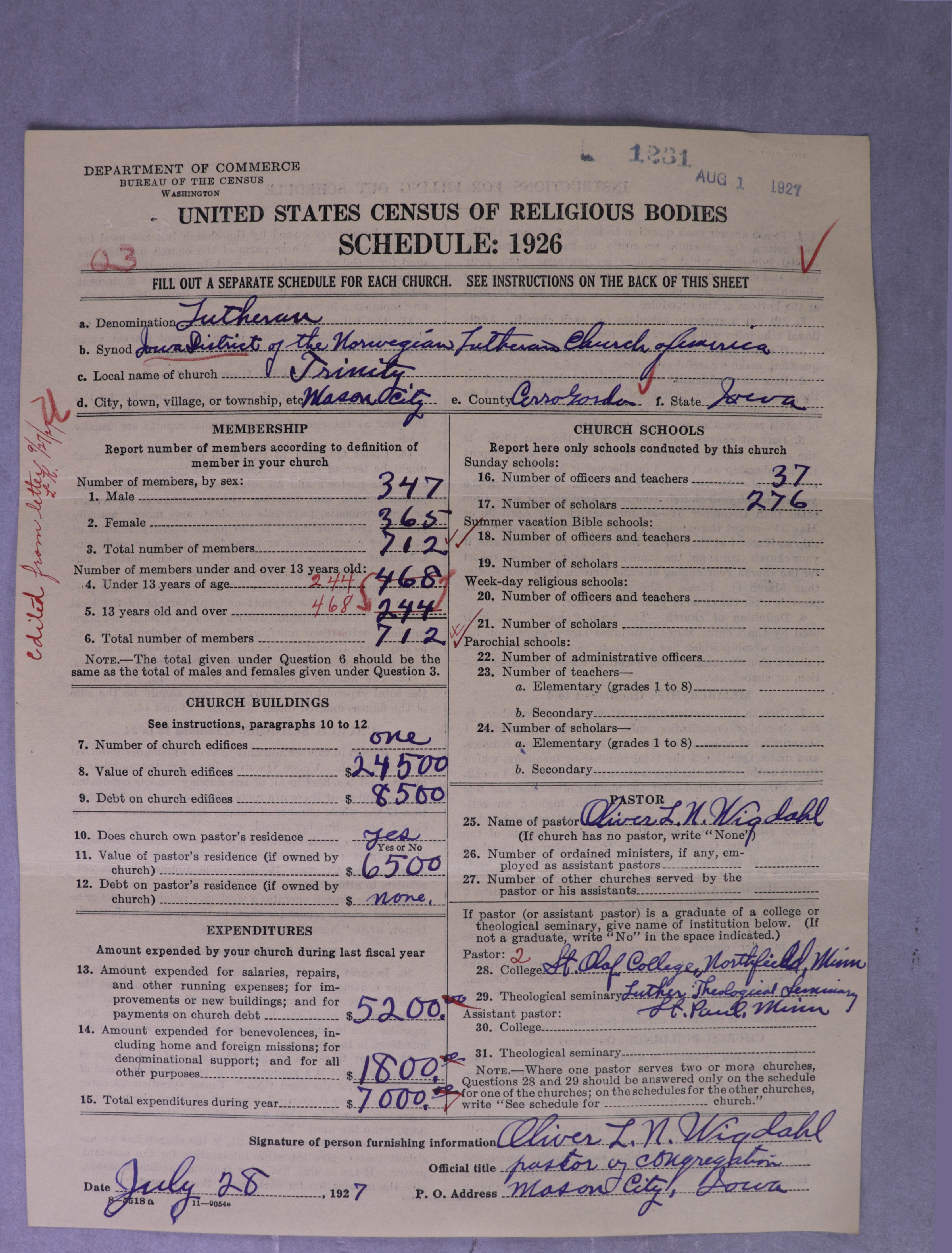 - Norwegian Lutheran Church of America: 1231