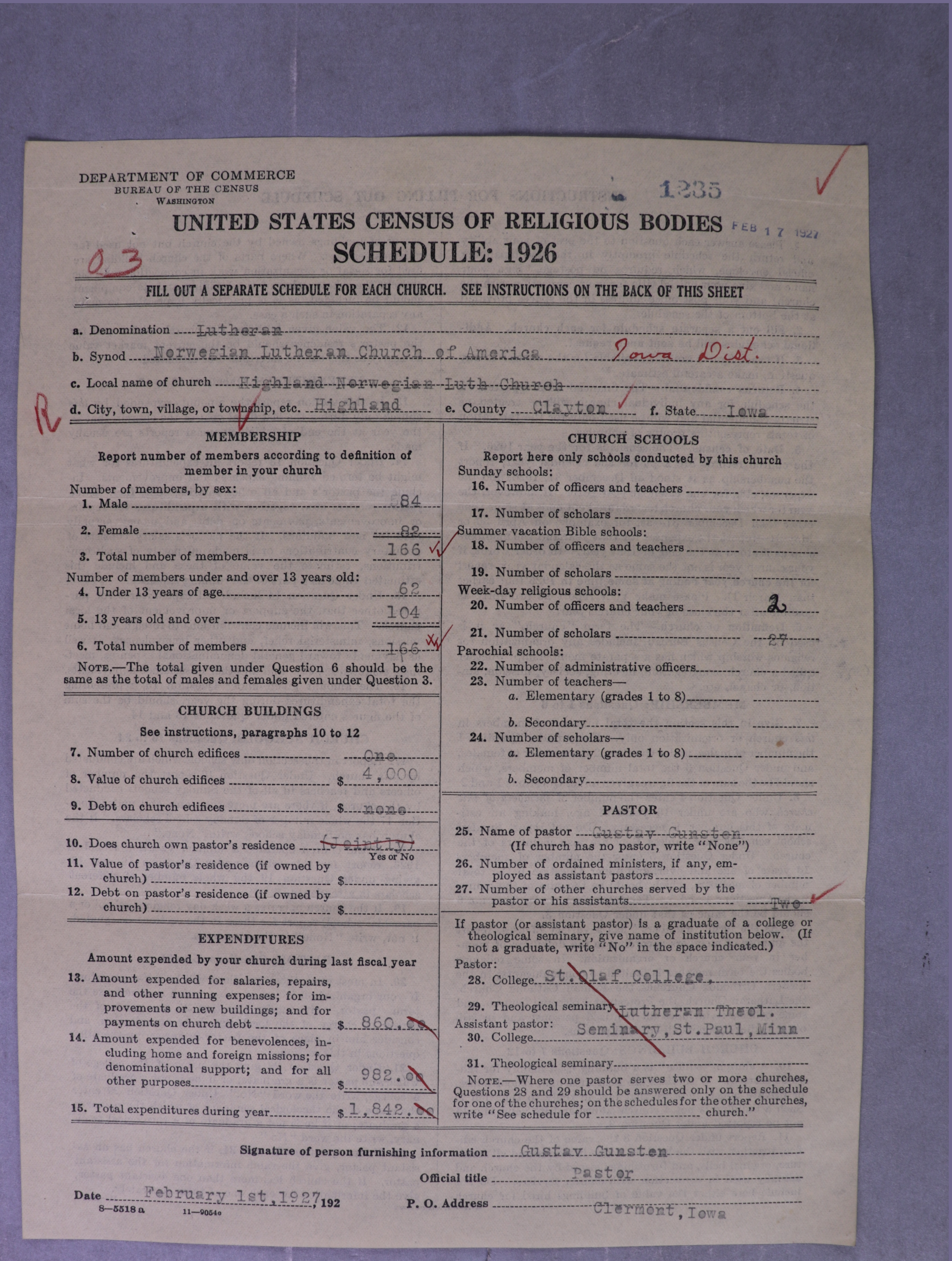 - Norwegian Lutheran Church of America: 1235