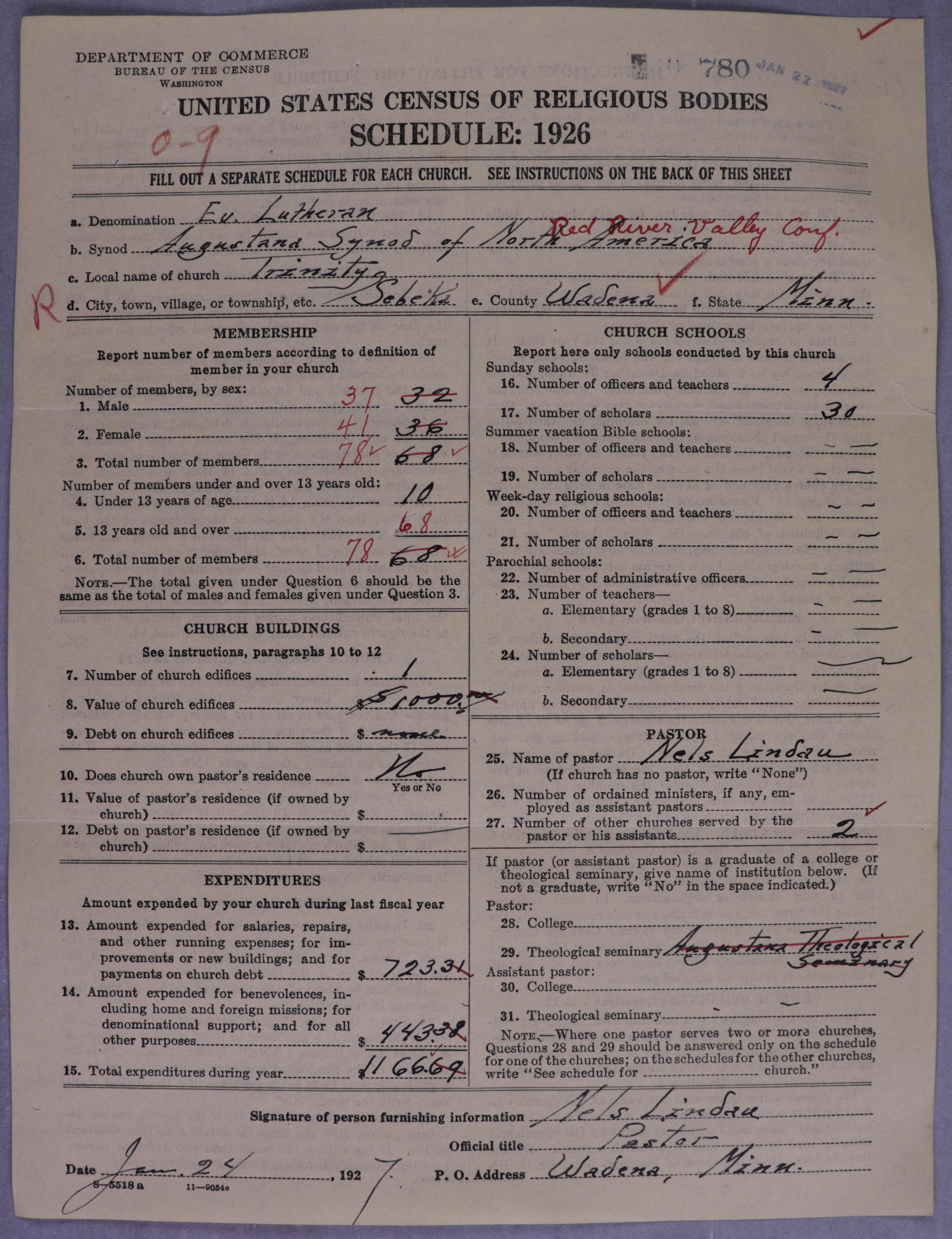 - Evangelical Lutheran Augustana Synod of North America: 780