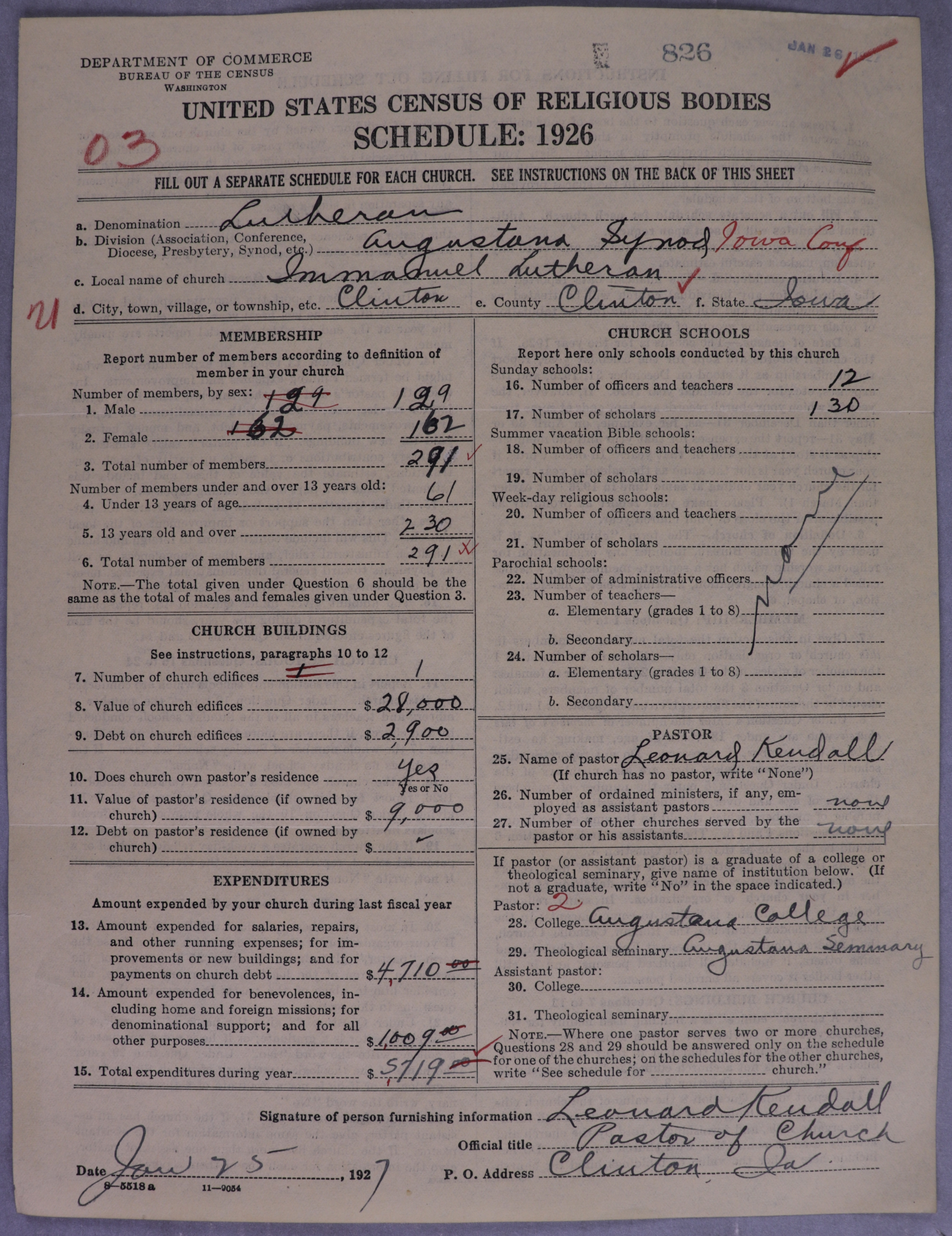 - Evangelical Lutheran Augustana Synod of North America: 826
