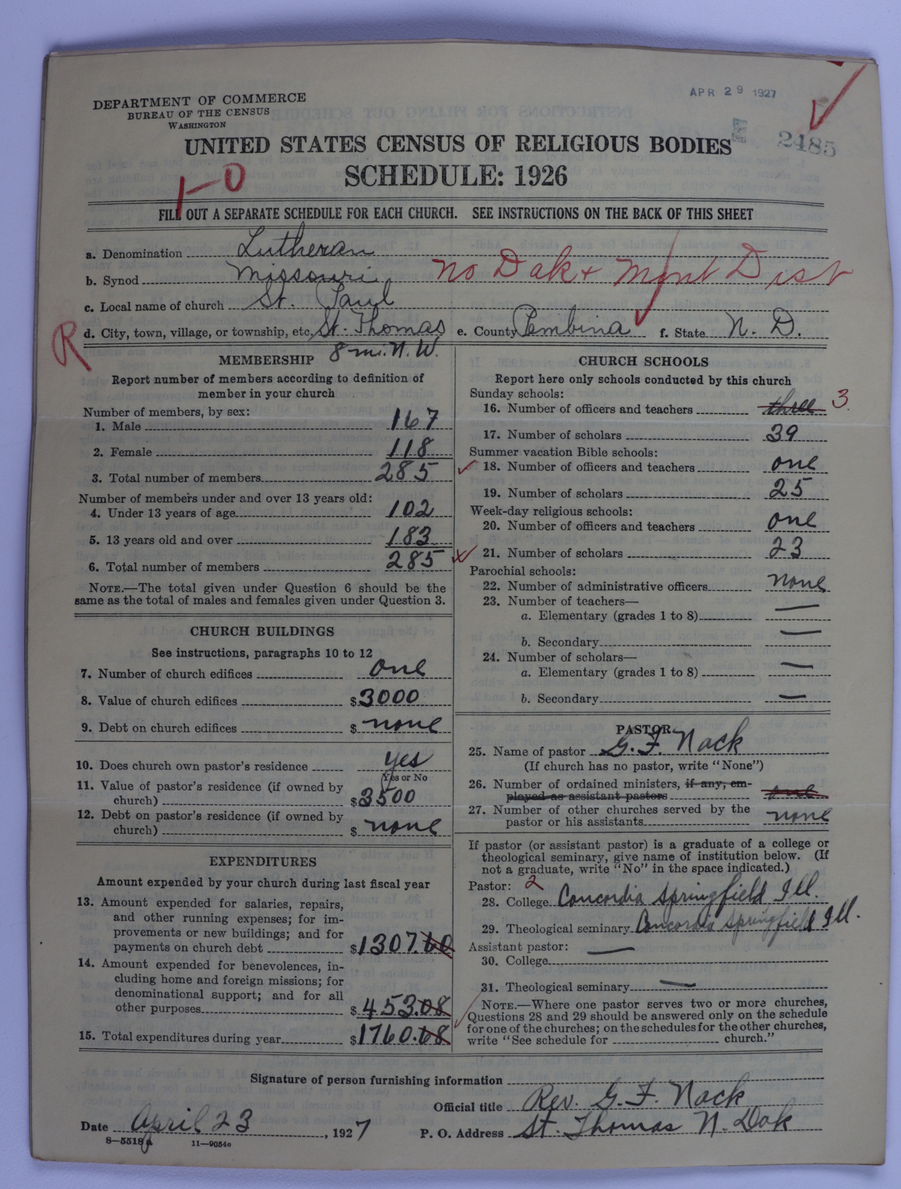 - Evangelical Lutheran Synodical Conference of America: Evangelical Lutheran Synod of Missouri, Ohio, and Other States: 2485