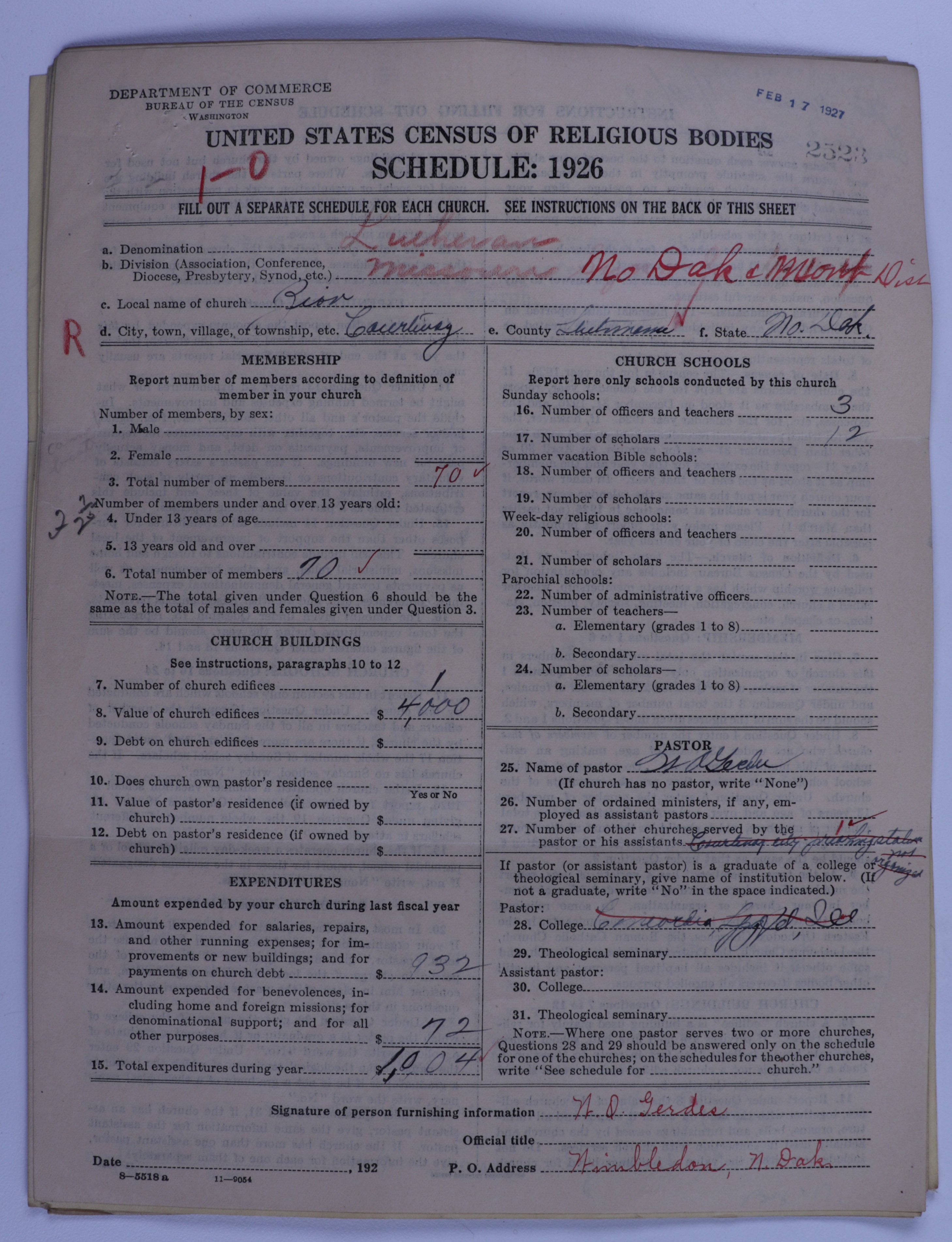 - Evangelical Lutheran Synodical Conference of America: Evangelical Lutheran Synod of Missouri, Ohio, and Other States: 2523