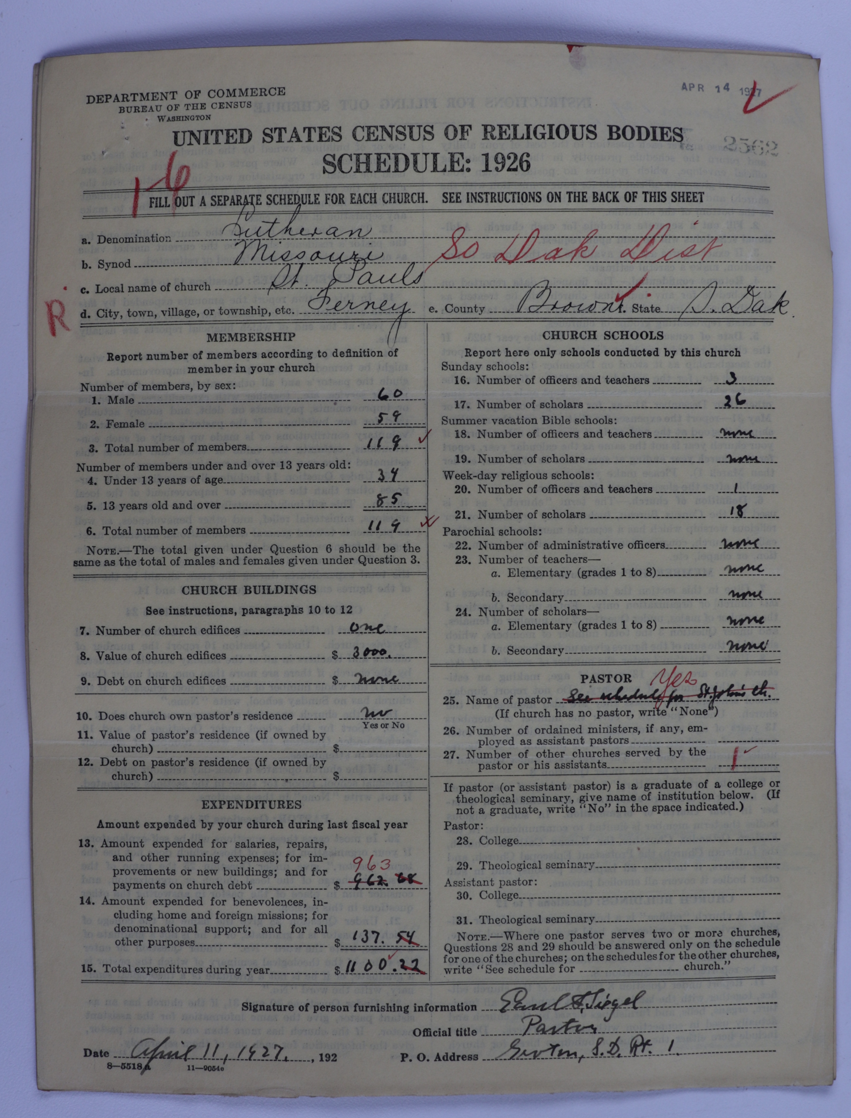 Evangelical Lutheran Synodical Conference of America: Evangelical Lutheran Synod of Missouri, Ohio, and Other States: 2562