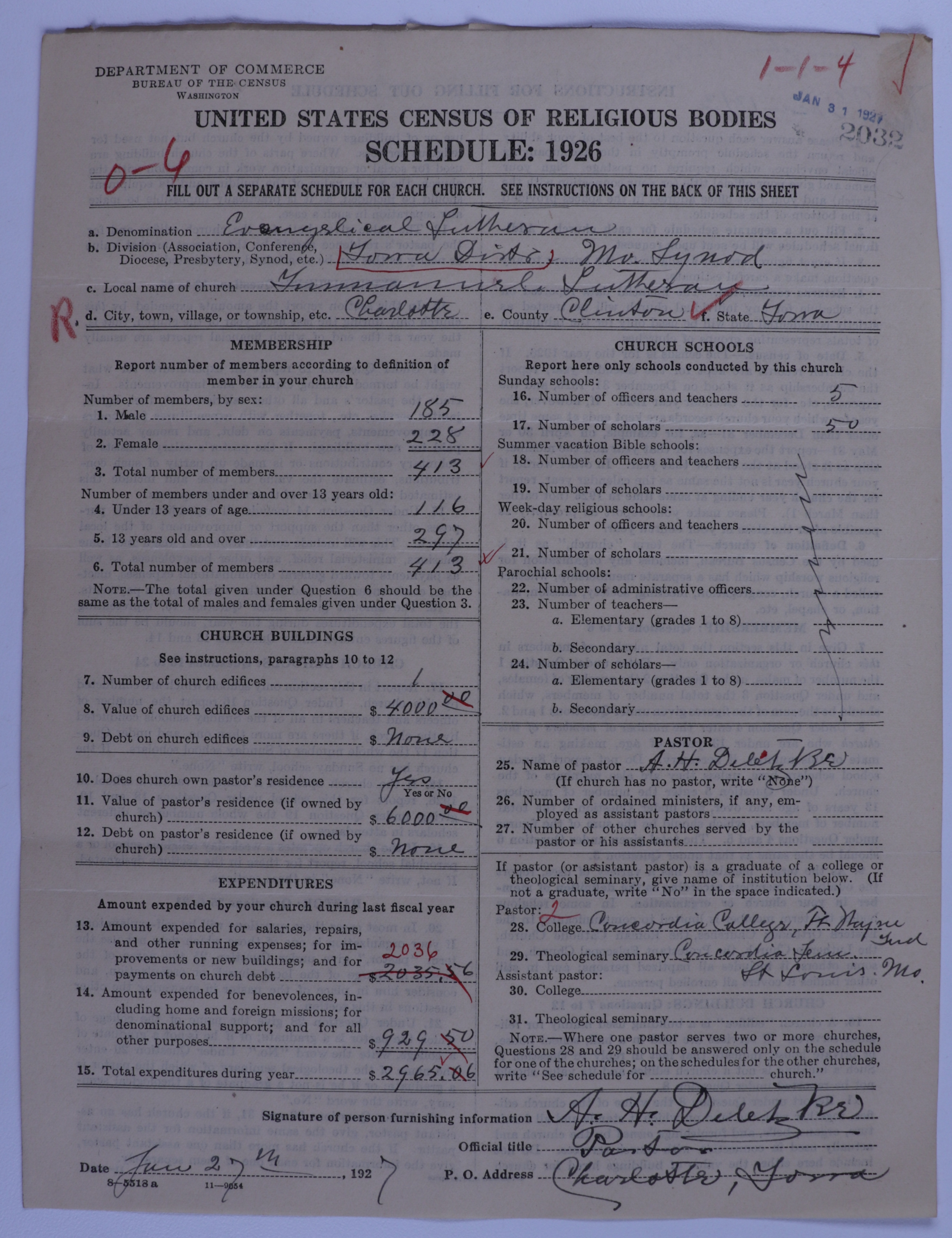 - Evangelical Lutheran Synodical Conference of America: Evangelical Lutheran Synod of Missouri, Ohio, and Other States: 2032