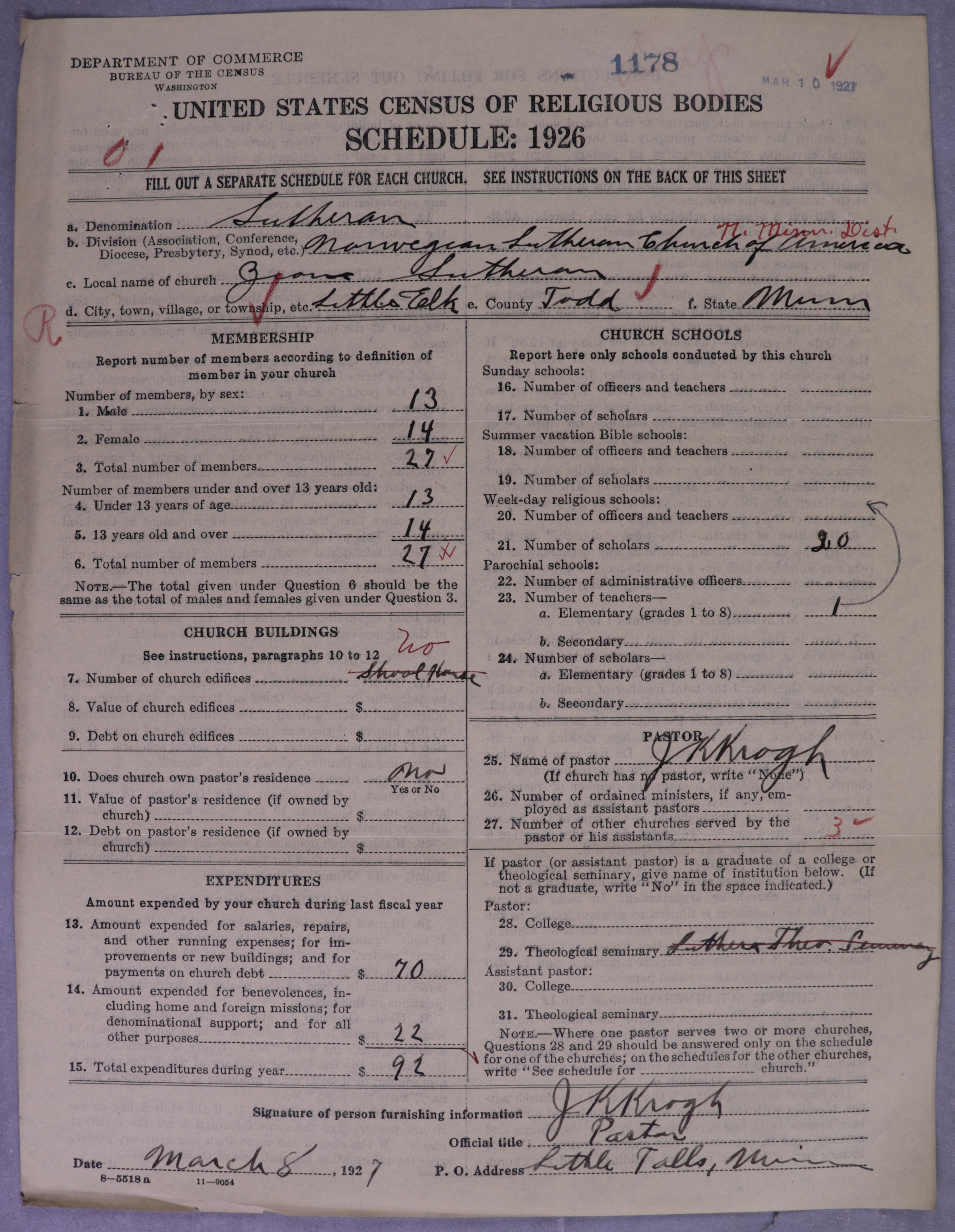 - Norwegian Lutheran Church of America: 1178