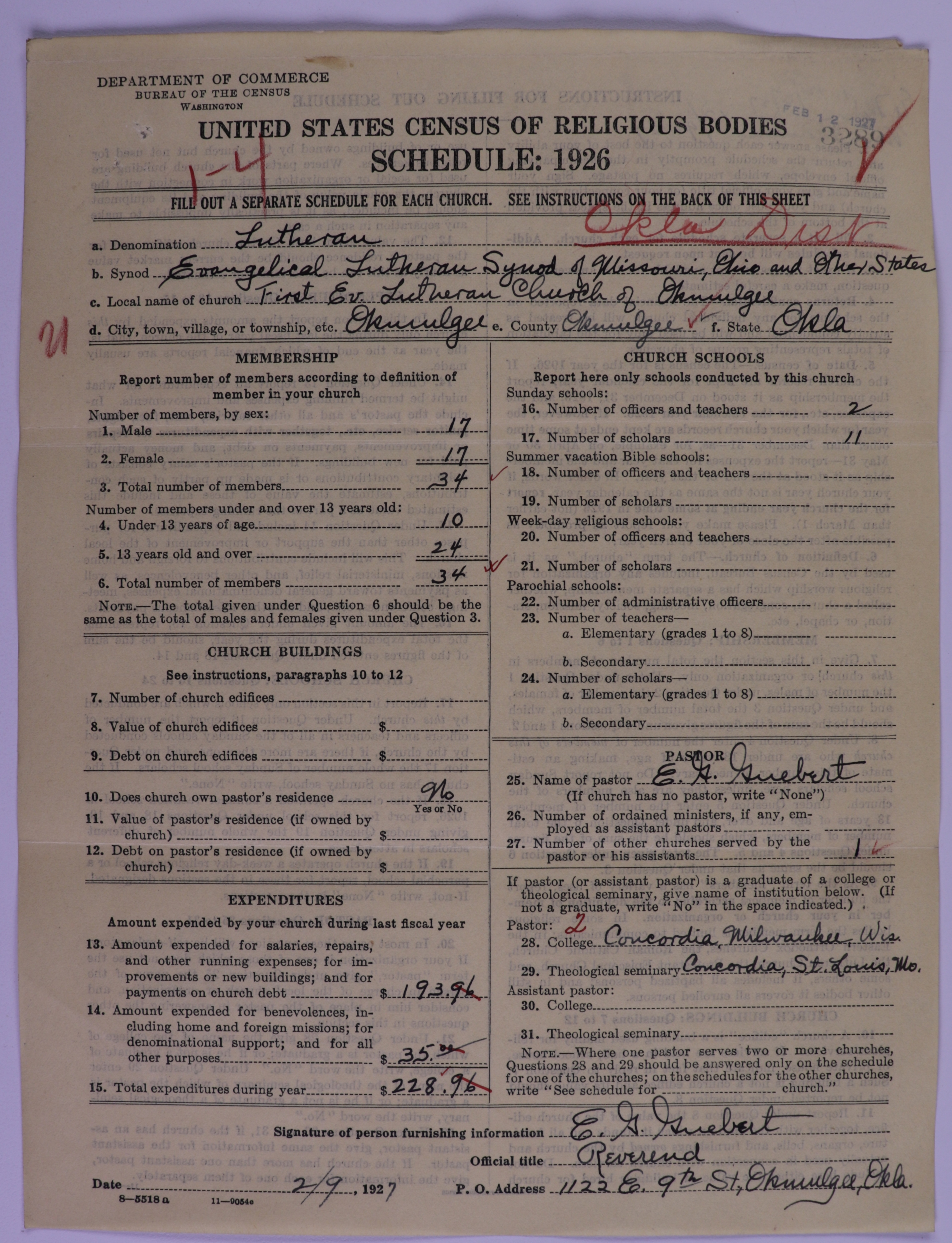 - Evangelical Lutheran Synodical Conference of America: Evangelical Lutheran Synod of Missouri, Ohio, and Other States: 3289