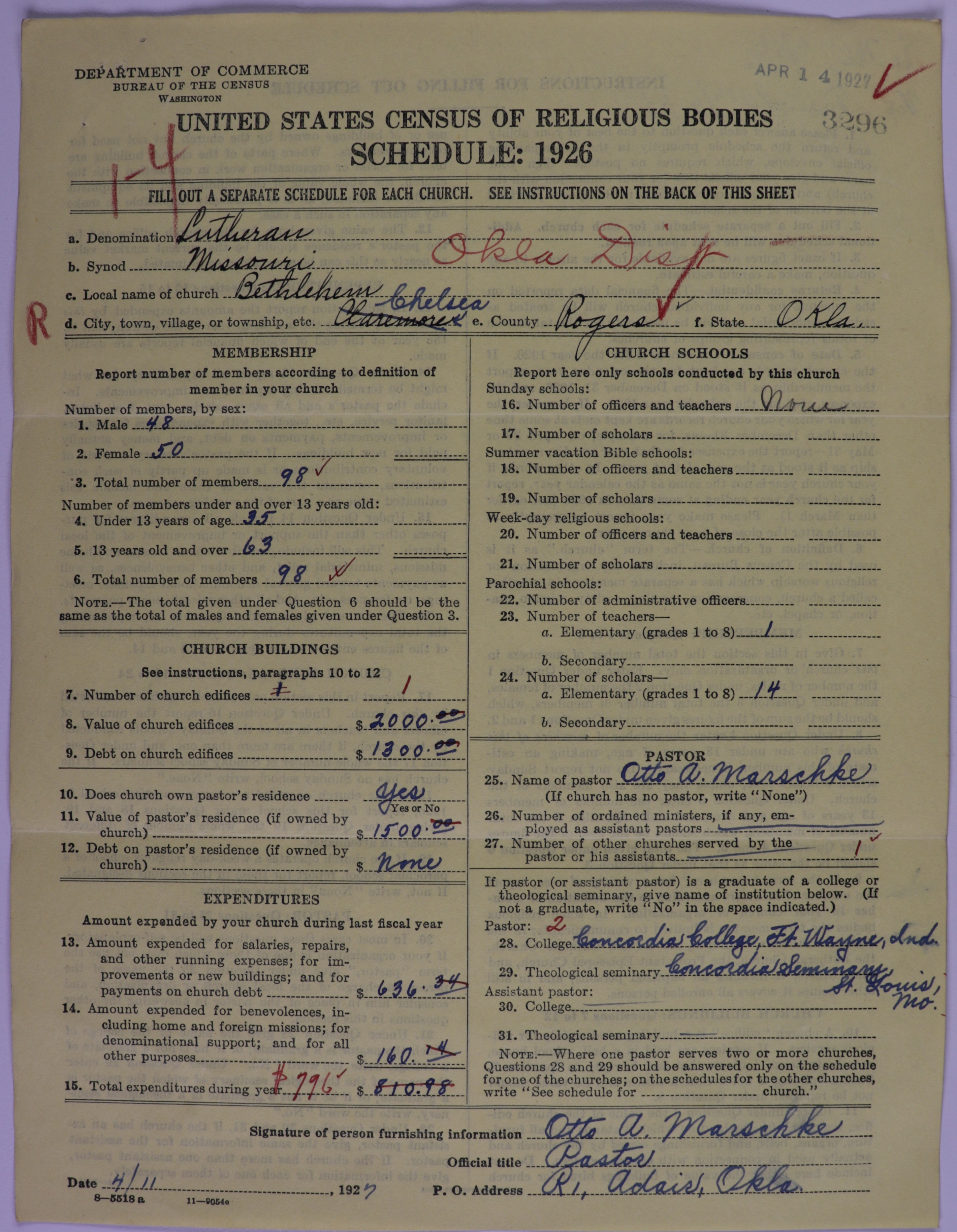 Evangelical Lutheran Synodical Conference of America: Evangelical Lutheran Synod of Missouri, Ohio, and Other States: 3296