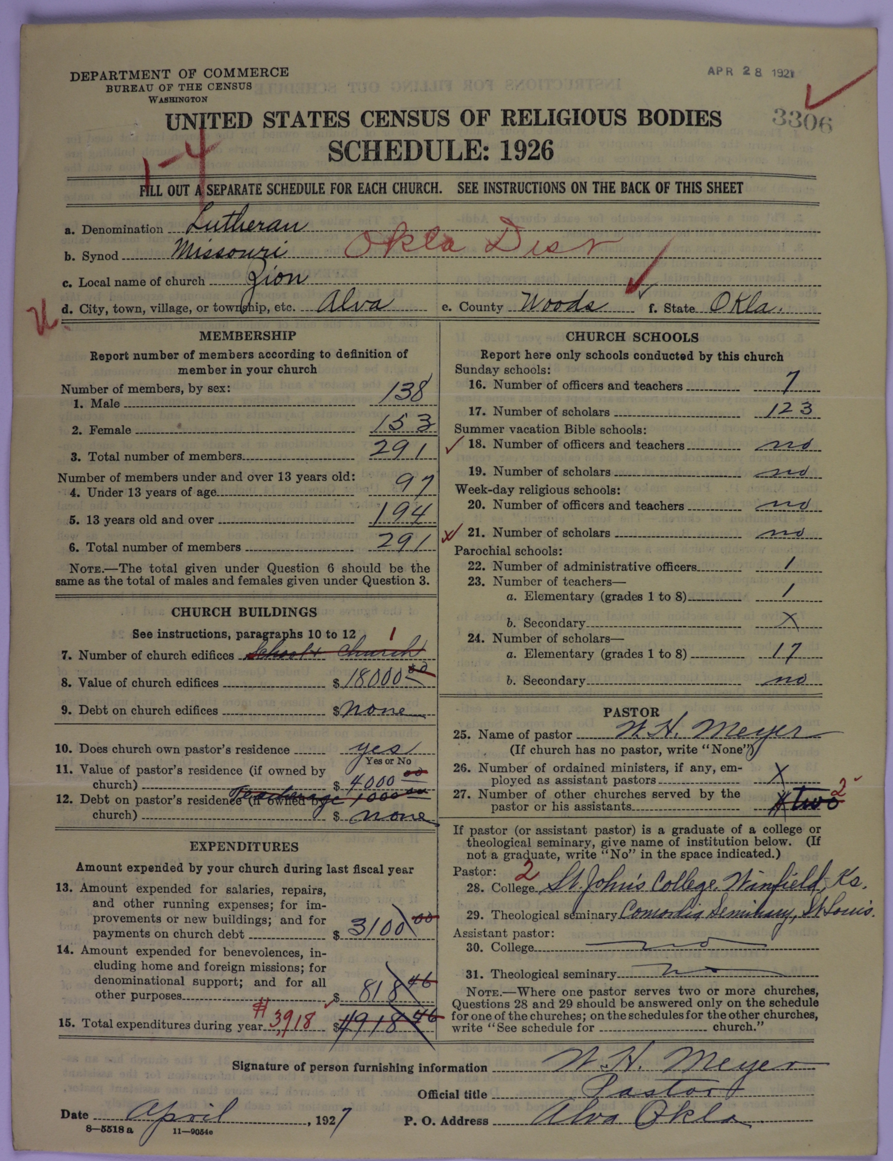 - Evangelical Lutheran Synodical Conference of America: Evangelical Lutheran Synod of Missouri, Ohio, and Other States: 3306