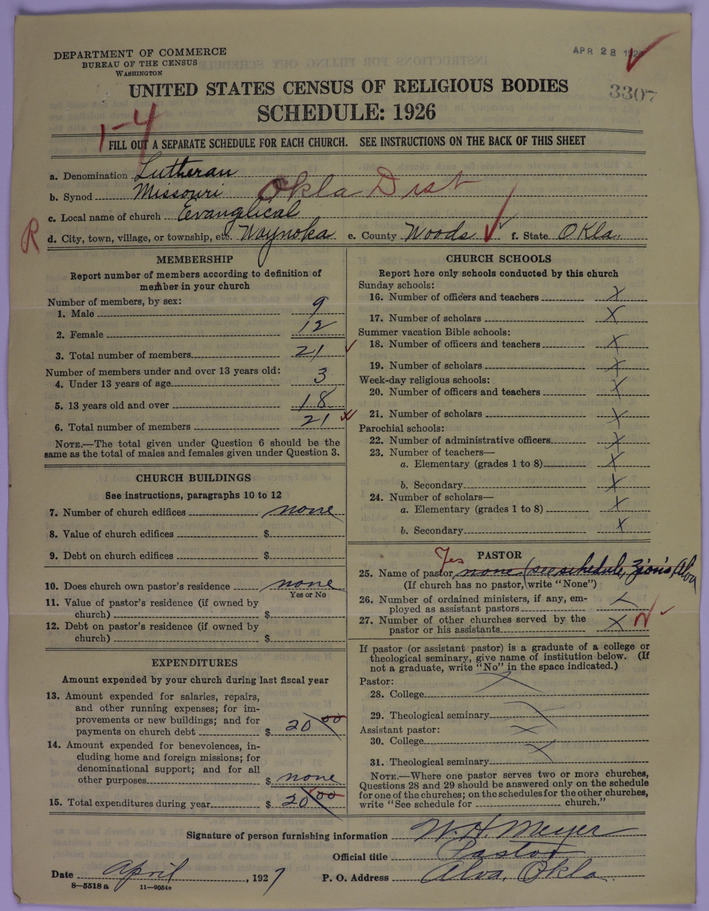 - Evangelical Lutheran Synodical Conference of America: Evangelical Lutheran Synod of Missouri, Ohio, and Other States: 3307