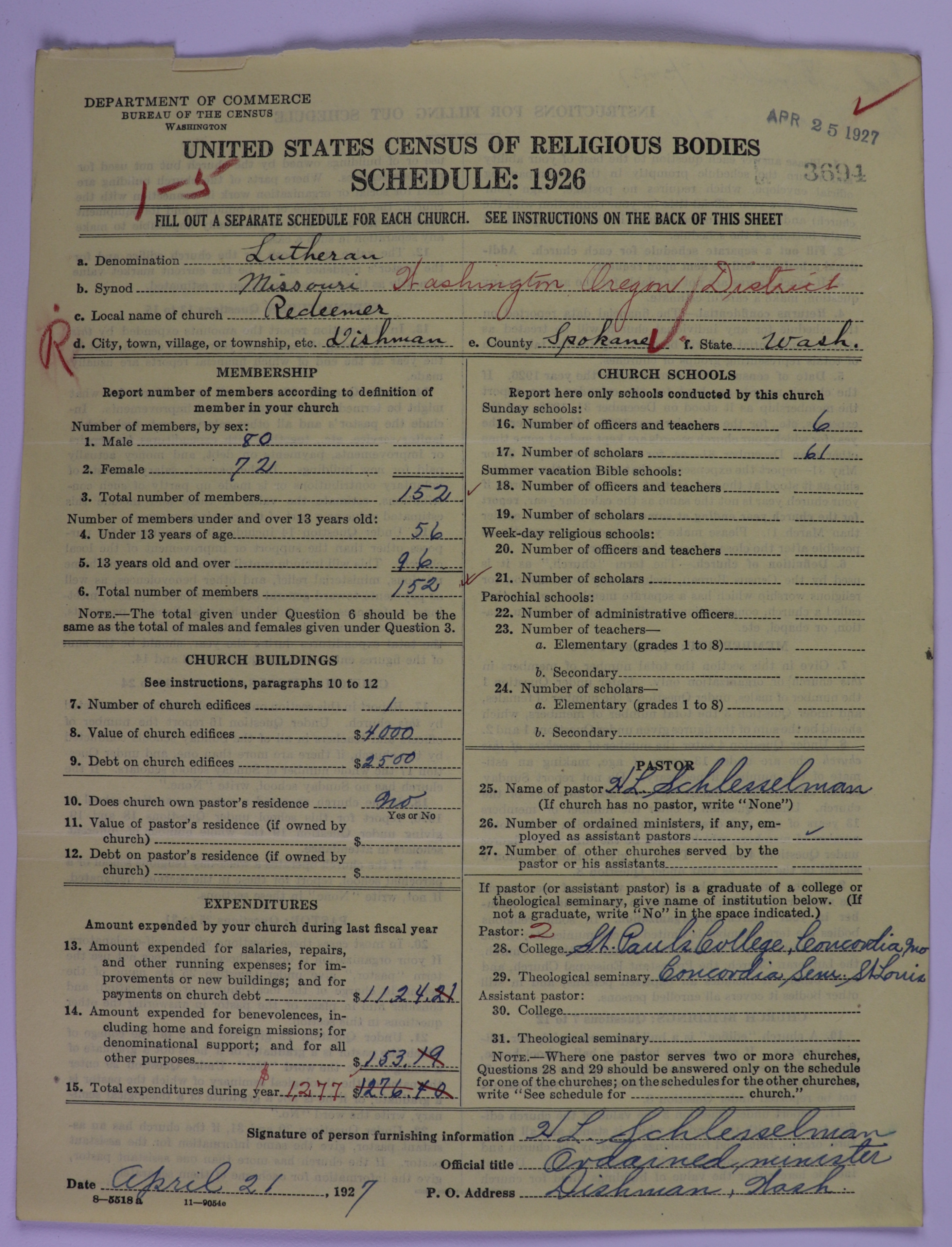- 1926 U.S. Census of Religious Bodies